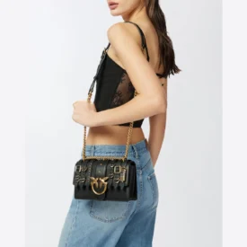 6.200 EGPالسعر الأصلي هو: 6.200 EGP.4.800 EGPالسعر الحالي هو: 4.800 EGP.Pinko Mini Bag Love One Pelle IMPRIME Black Embossed Logo