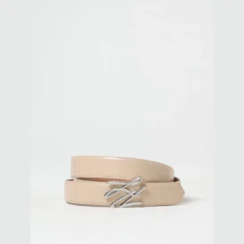 Women Allover Print Leather Reversible Belt With Silver Buckle, Beige