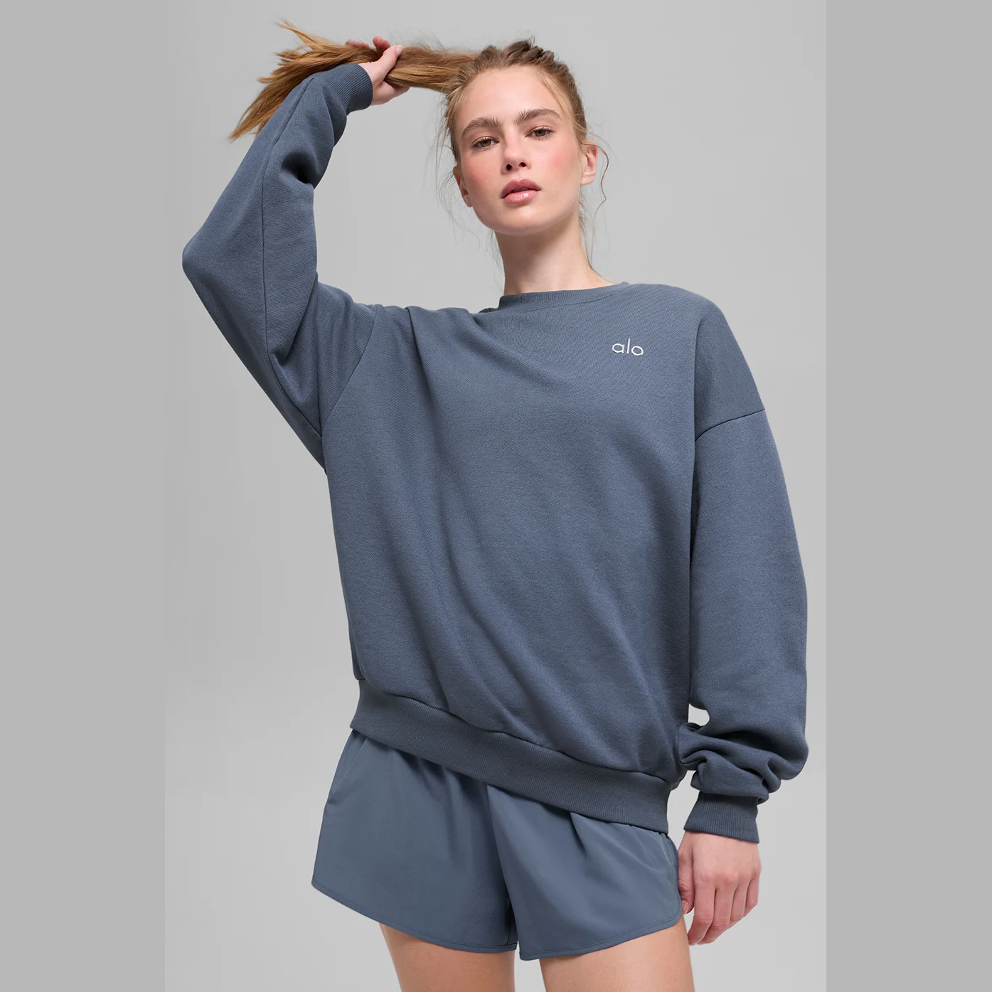 This best seller is cozy, comfortable, cute and done in classic neutrals and on-trend colors—each finished with a chrome Alo logo. It has a classic crewneck, ribbed cuffs and hem, and a laid-back dropped-shoulder fit. It’s made from midweight French terry that’s smooth on the outside and fleecy on the inside with the perfect drape. Pair with the Accolade sweatpants to make a matching set—and get one for your bestie, sibling, or partner, if you’re into that. Find your fit and see all the ways to style it.