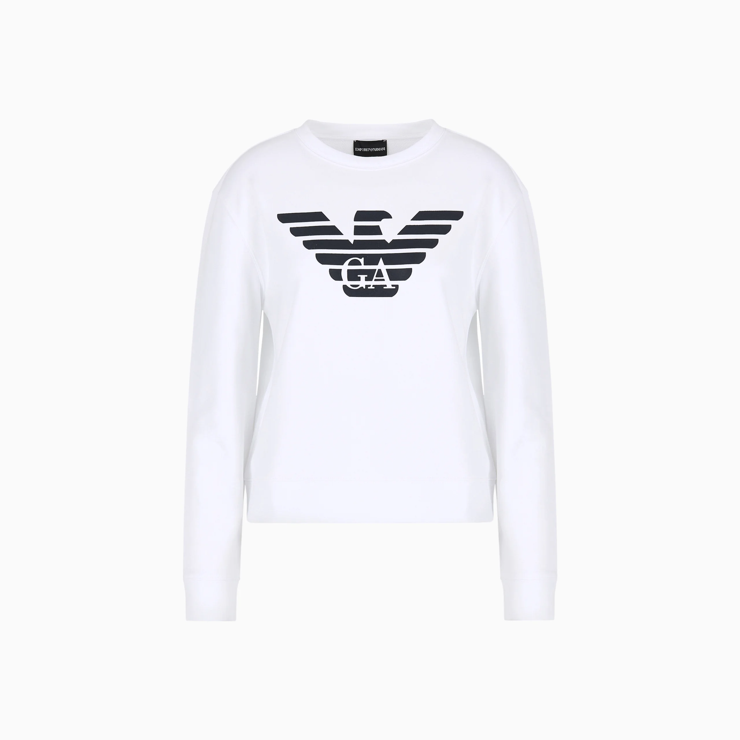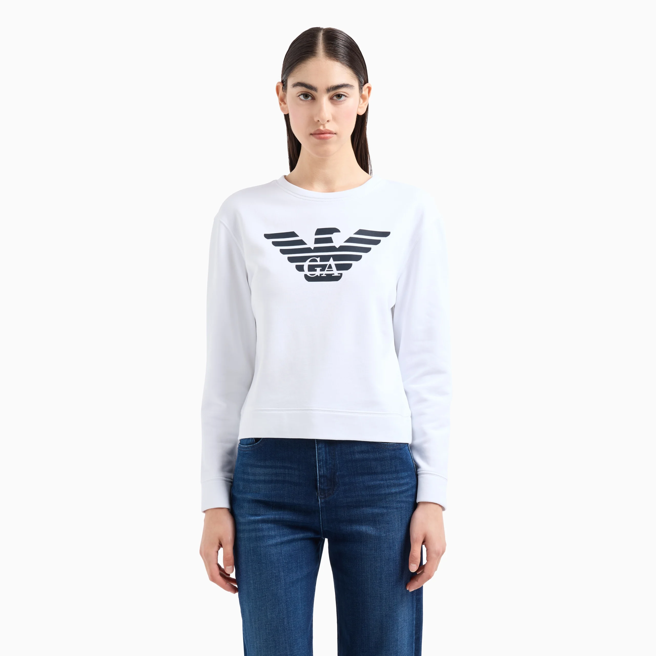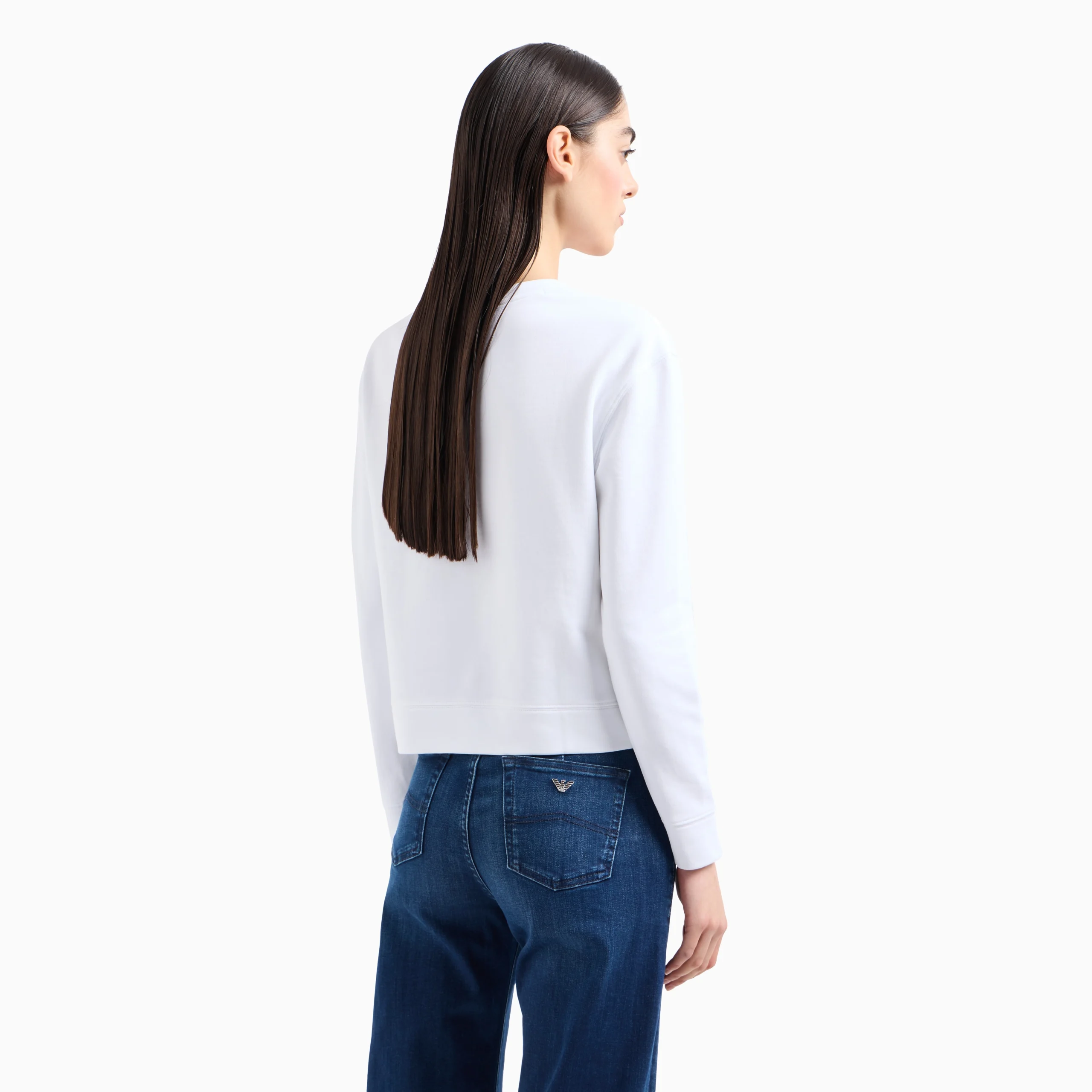 Women’s sweatshirt in organic cotton jersey, a fabric made from natural fibres from organic agriculture, with a logo print on the front that adds distinction to the style. The piece belongs to the Essentials selection, the Emporio Armani capsule collection that makes a statement of enduring style: both elegant and practical, it works for numerous combinations on a wide array of occasions. The colour palette includes the brand’s characteristic neutral shades, combined with a minimalist design to create a series of key pieces for the female wardrobe