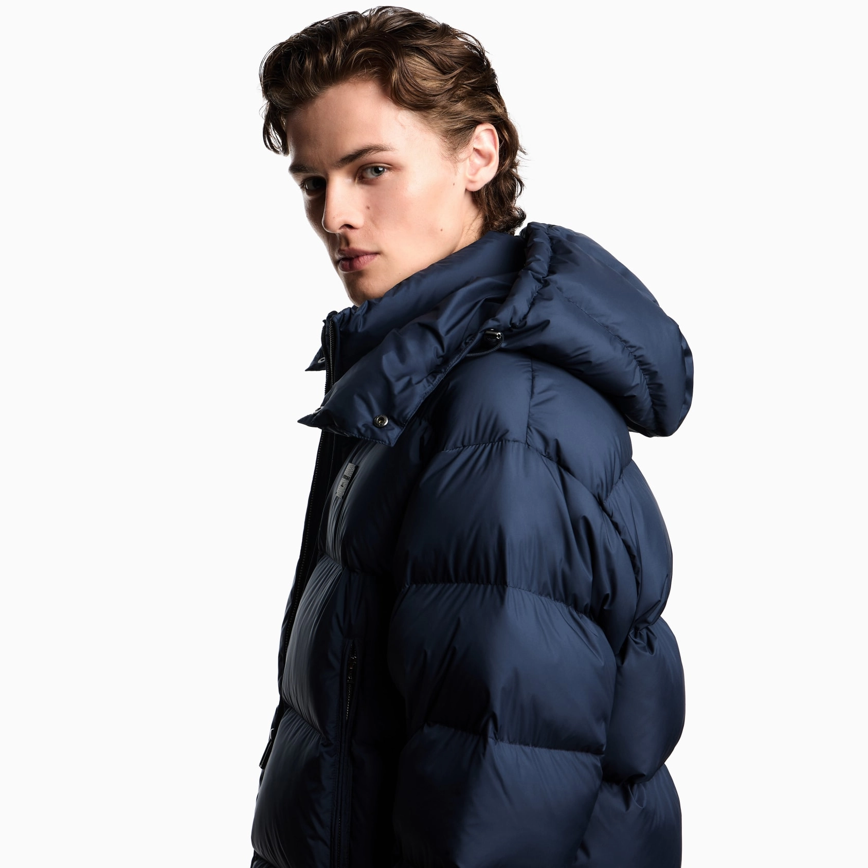 Quilted ultra-fine ripstop nylon down jacket with detachable hood and full-zip fastening. The 100% polyester fabric combines its extremely light weight with excellent resistance and durability, thanks to the ripstop structure of the texture. All these characteristics, together with its water-repellent properties, make it a suitable piece for multiple situations, ensuring comfort and performance in different weather conditions.