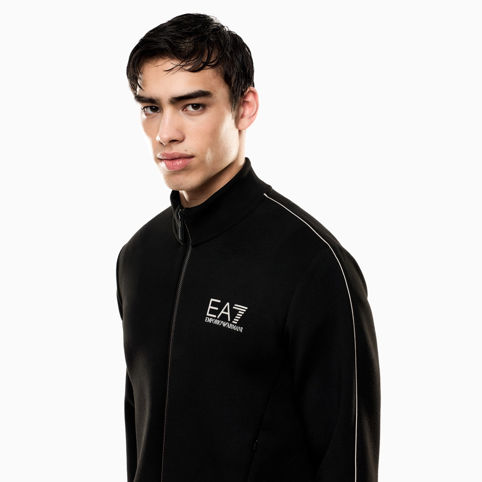 Contrasting EA7 logo on the chest