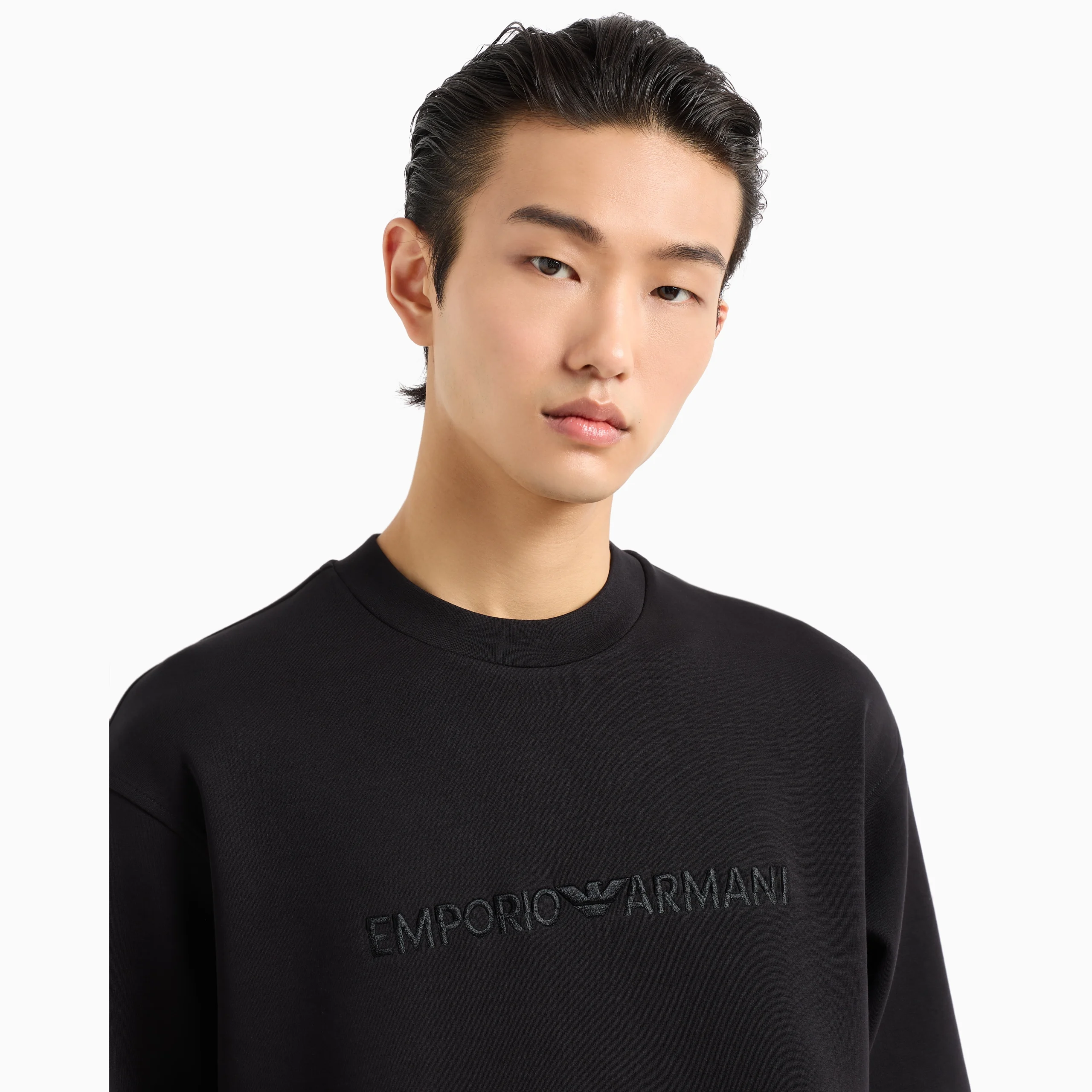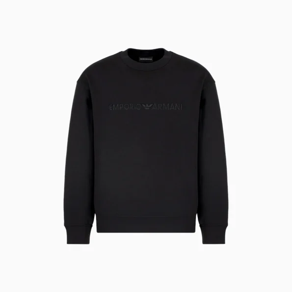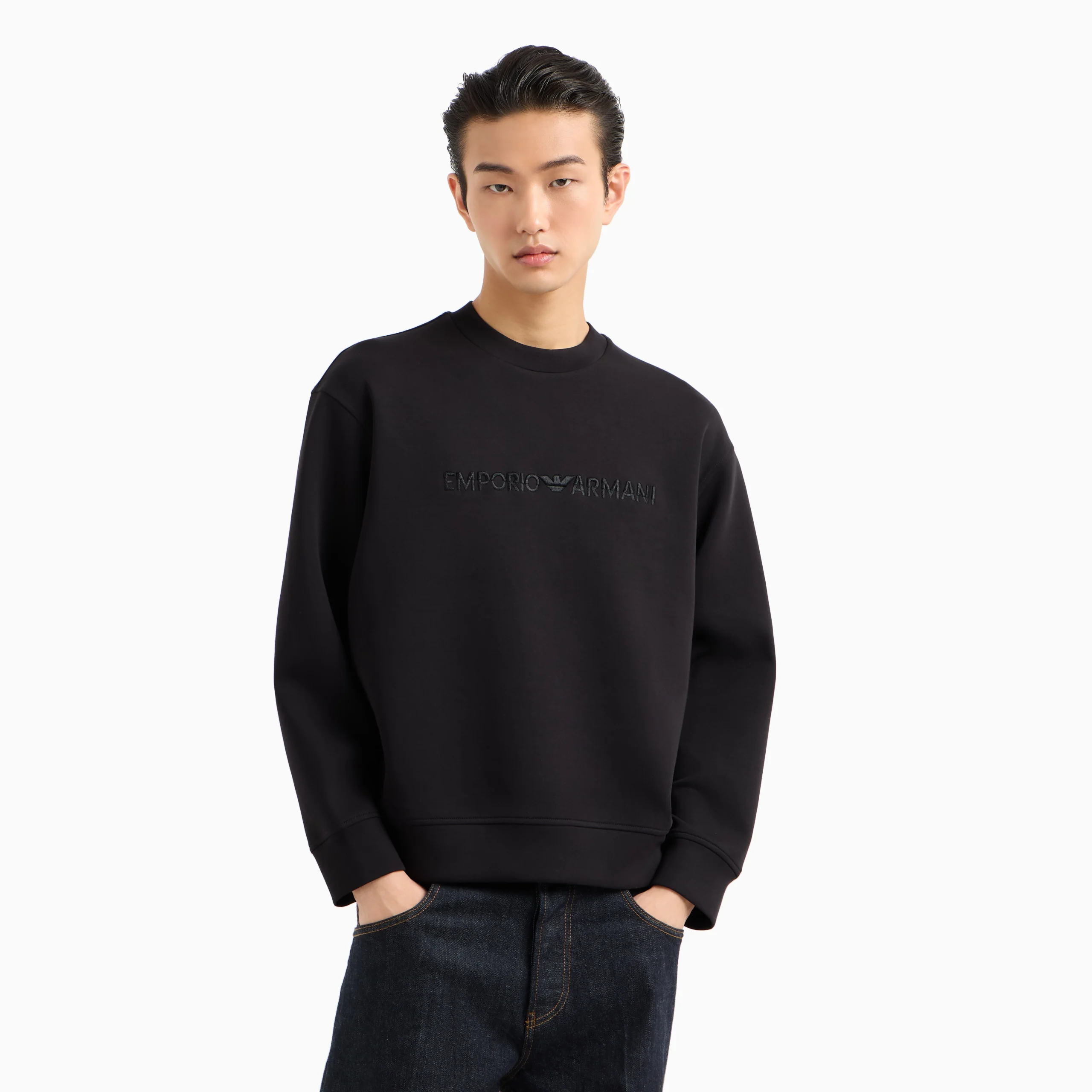 Crew-neck sweatshirt in cosy double jersey. The bold matching, embossed embroidered logo on the front of the garment is a distinctive constant of style.