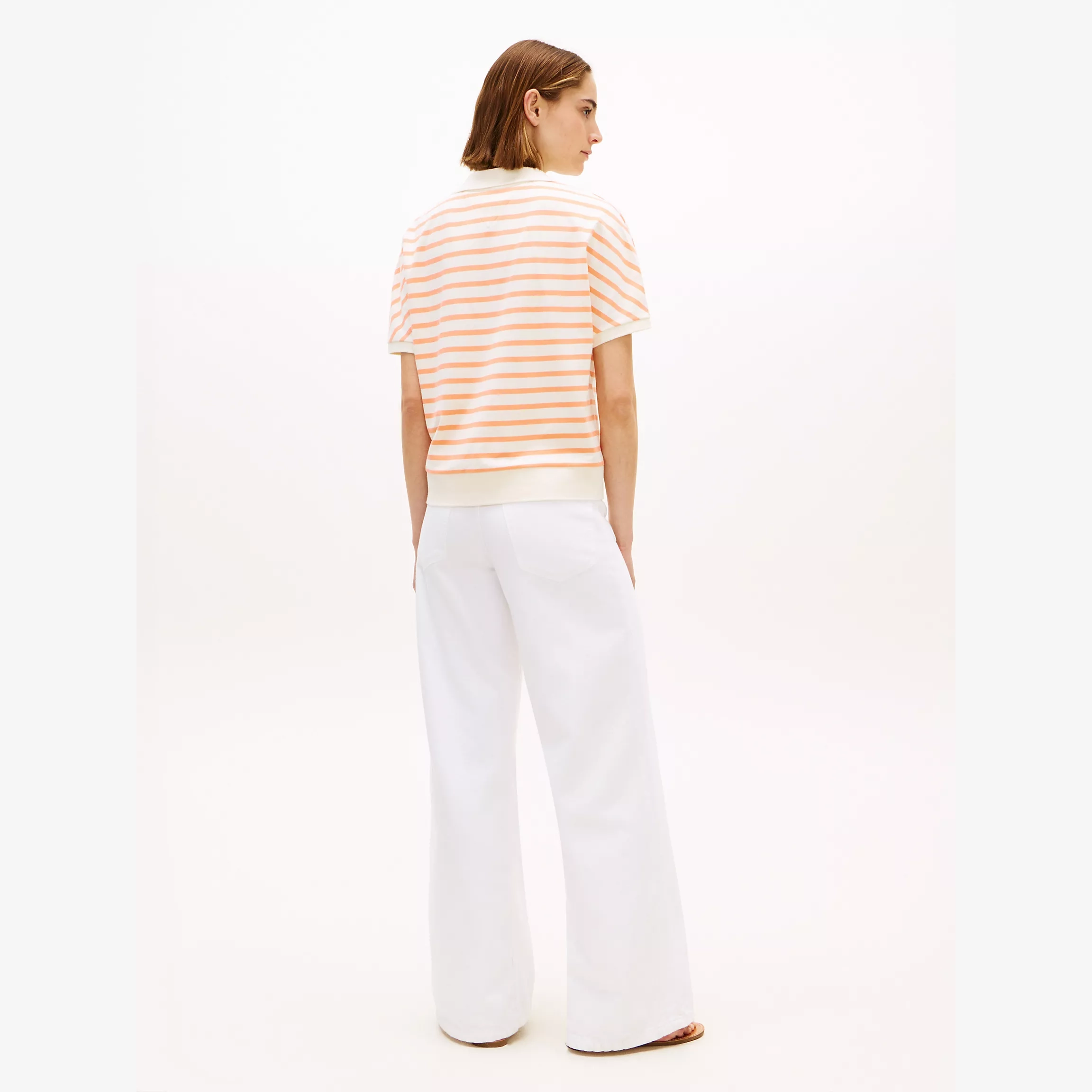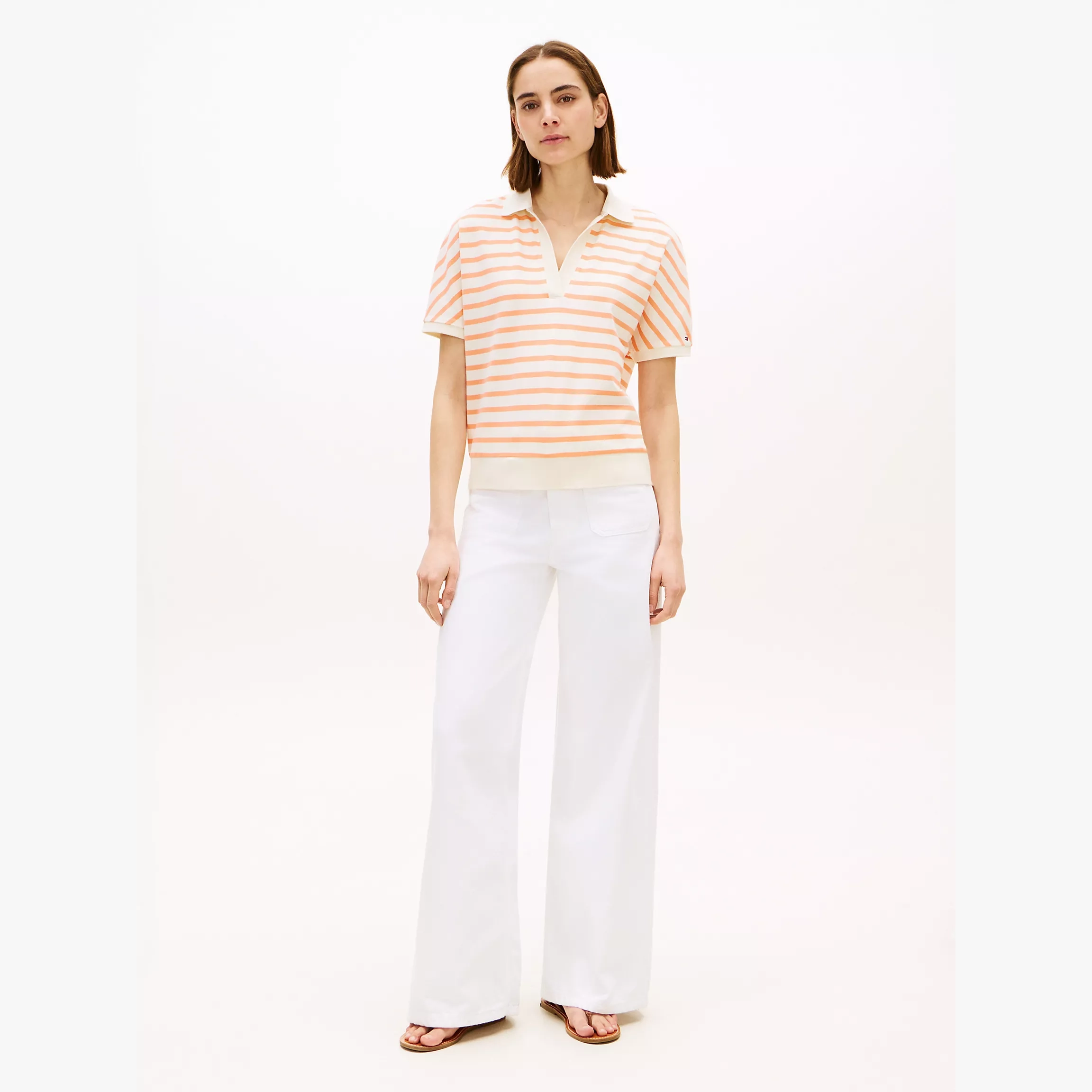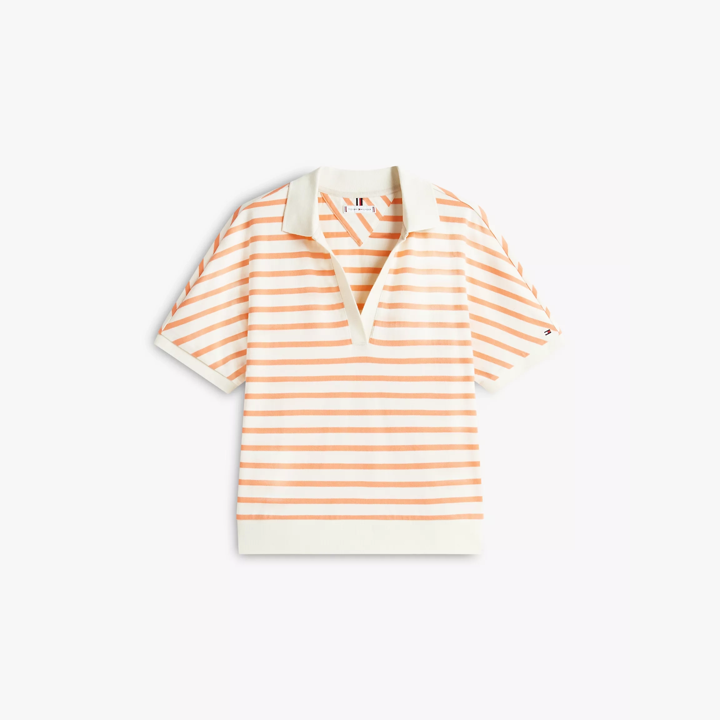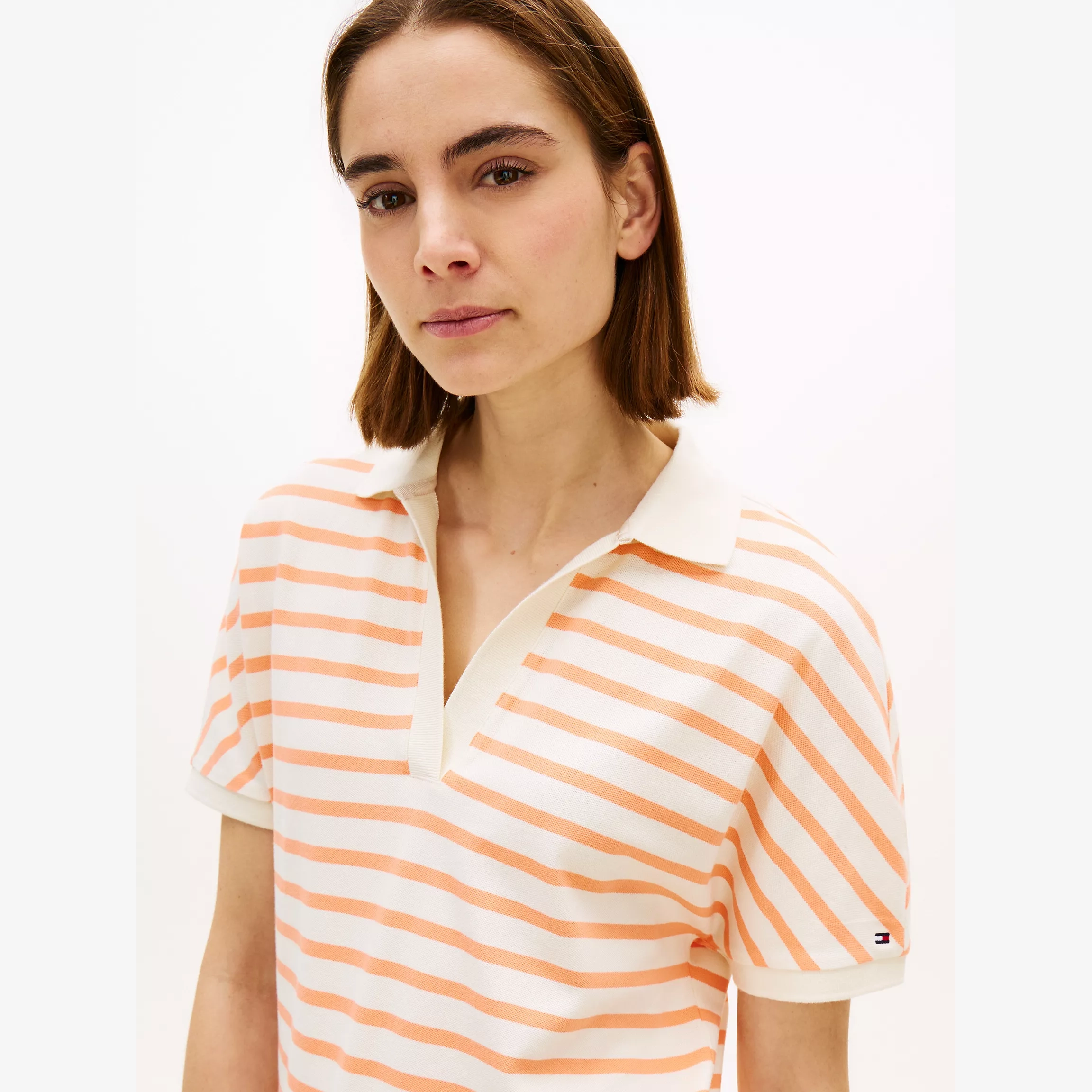 Tommy Hilfiger women’s polo. Channel sporty vibes with this relaxed polo, featuring a heathered stripe design and an open placket. Made from stretch-cotton pique, this top offers a soft lightweight feel that keeps you comfortable all day.