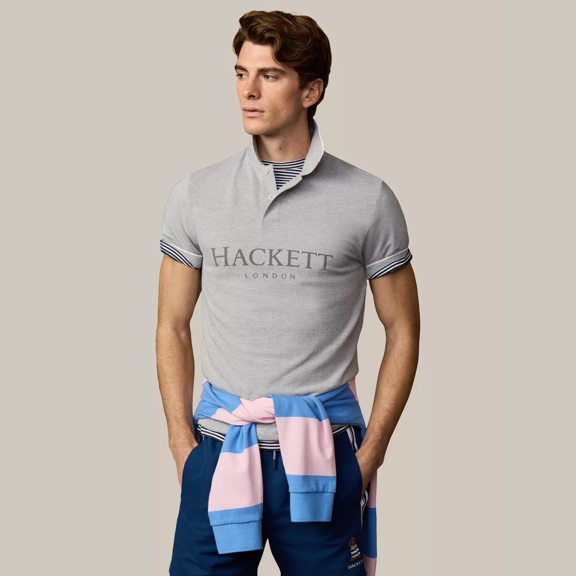 Heritage Cotton Classic Fit Short Sleeve Polo Shirt, Light Grey Marl