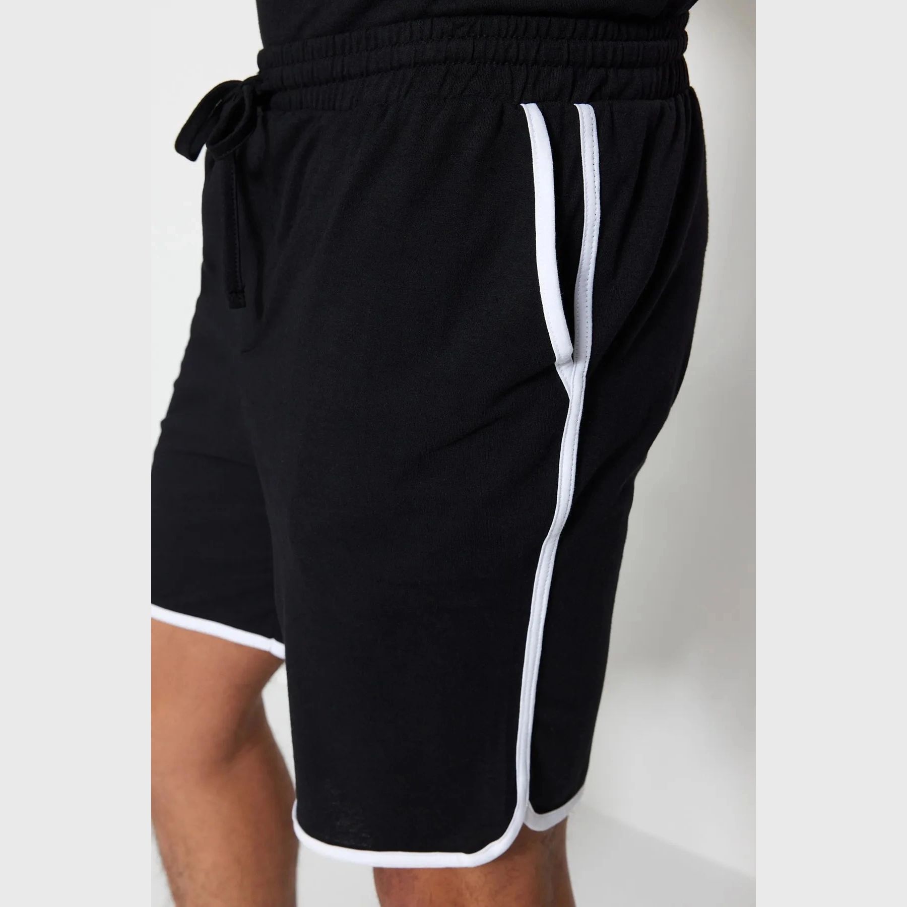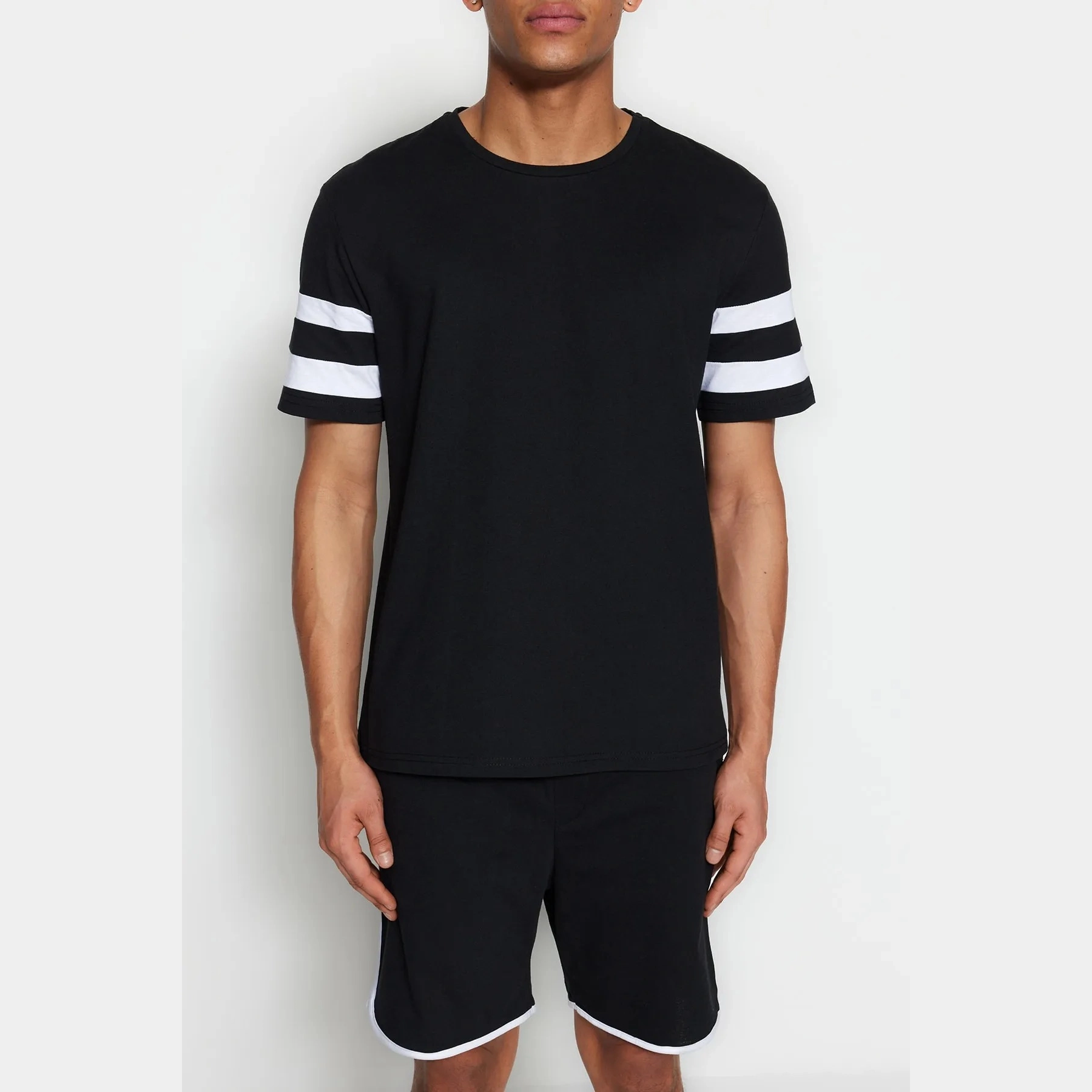 Trendyol Collection Black Regular Fit Crew Neck Sleeve Striped Pajamas Set with Shorts TMNSS23PT00001