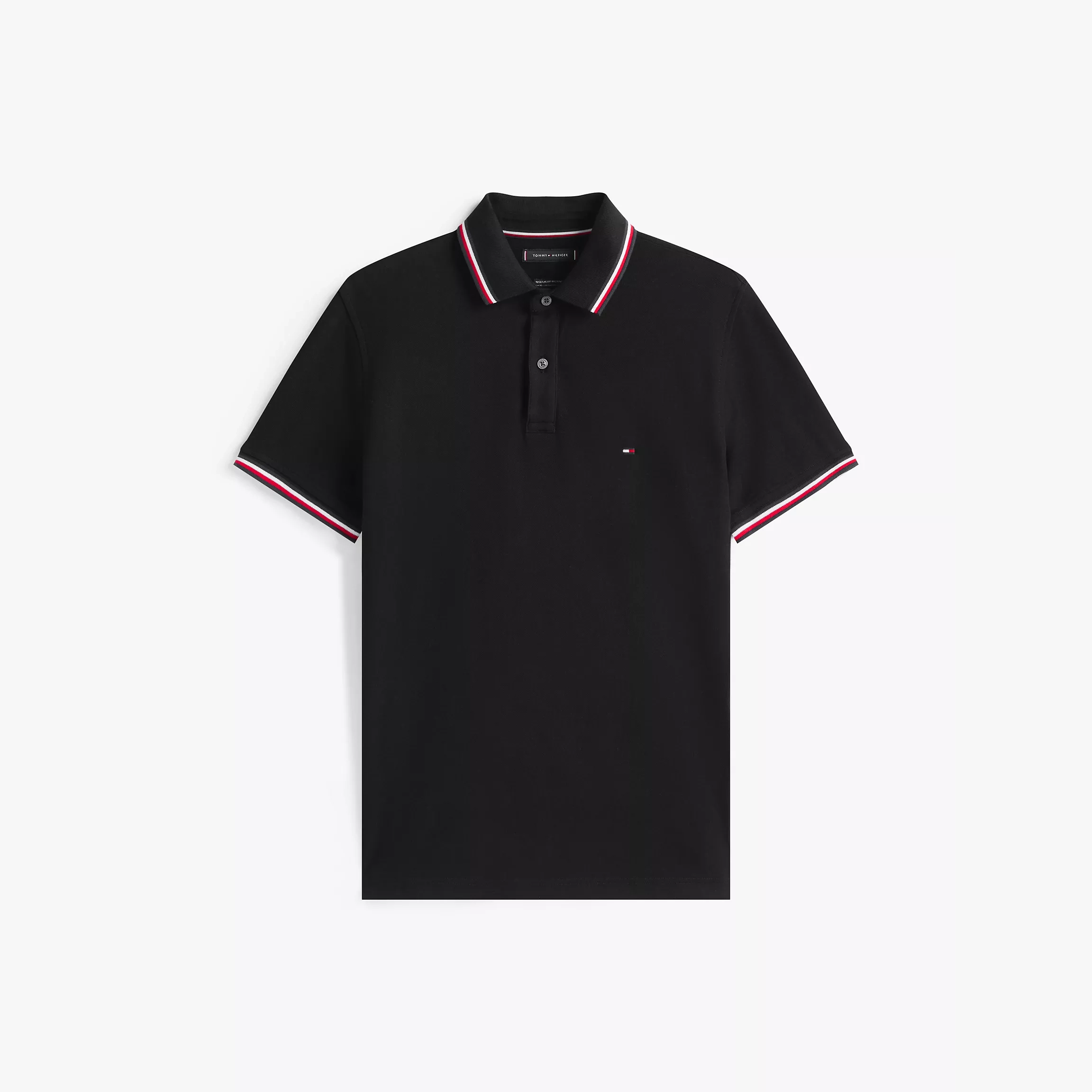 Tommy Hilfiger men’s polo. A fresh spin on tradition, this regular-fit polo is made from quick-dry, wicking fabric with ultraviolet protection and features our signature stripe tipping at the cuffs and collar.