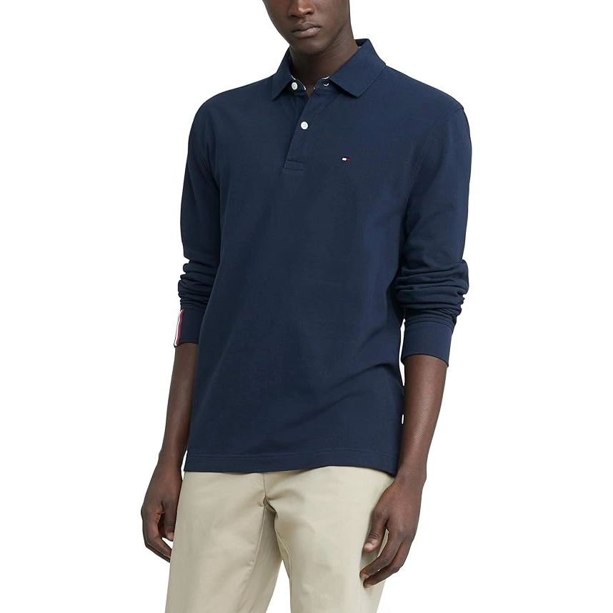 • Tommy Hilfiger long sleeve polo for men with a button closure. Polo for men with ribbed collar and cuffs. Mens polo featuring a classic tommy design. Great for any casual occasion.