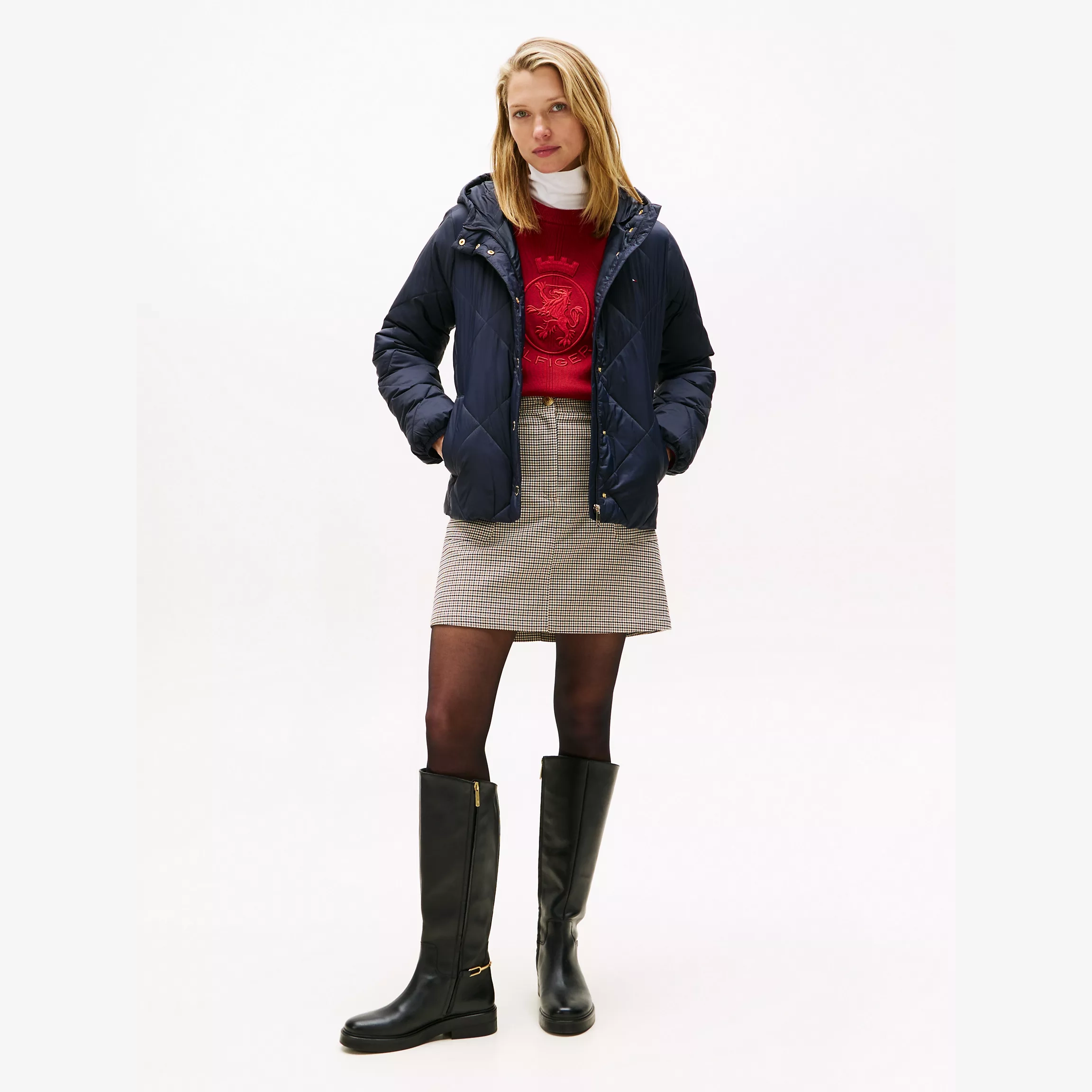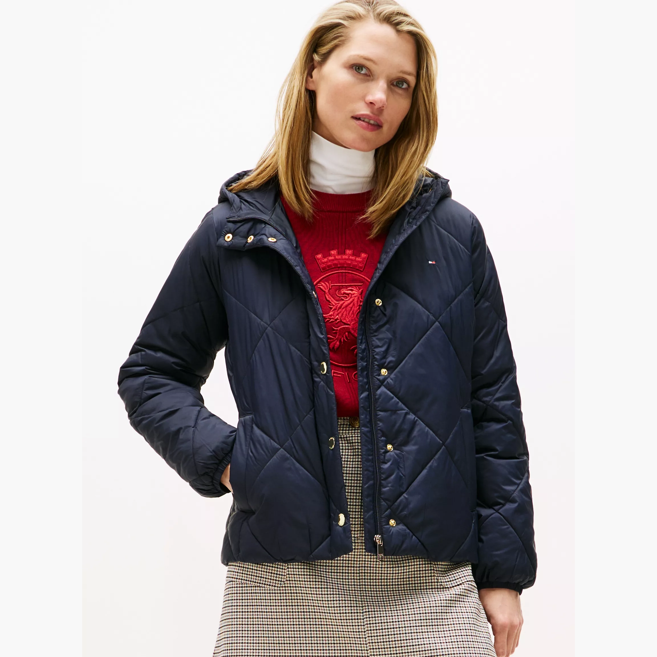 Tommy Hilfiger women’s jacket. Our lightweight jacket is made to withstand the elements. It’s designed with a quilted shell and core-warming thermal padded insulation to help you stay warm and comfortable.