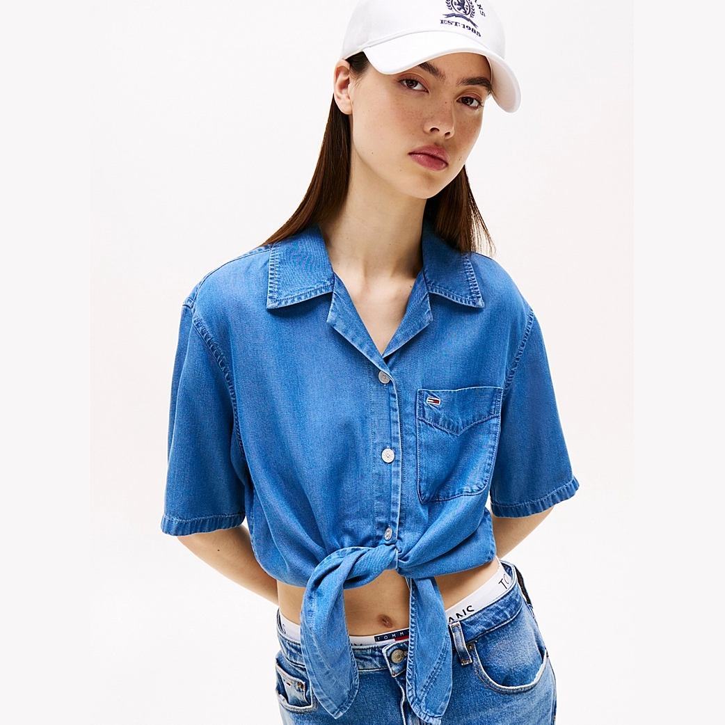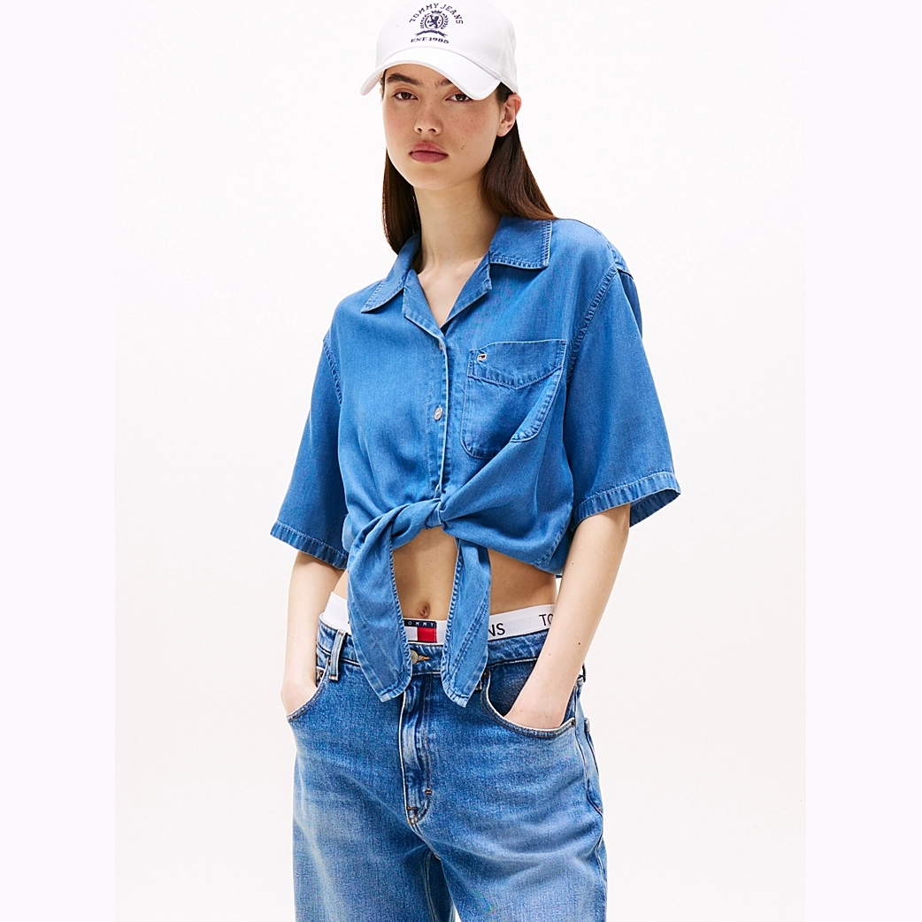 This denim-inspired short-sleeve shirt is a literal twist on a classic style, perfect for a chilled retro look.