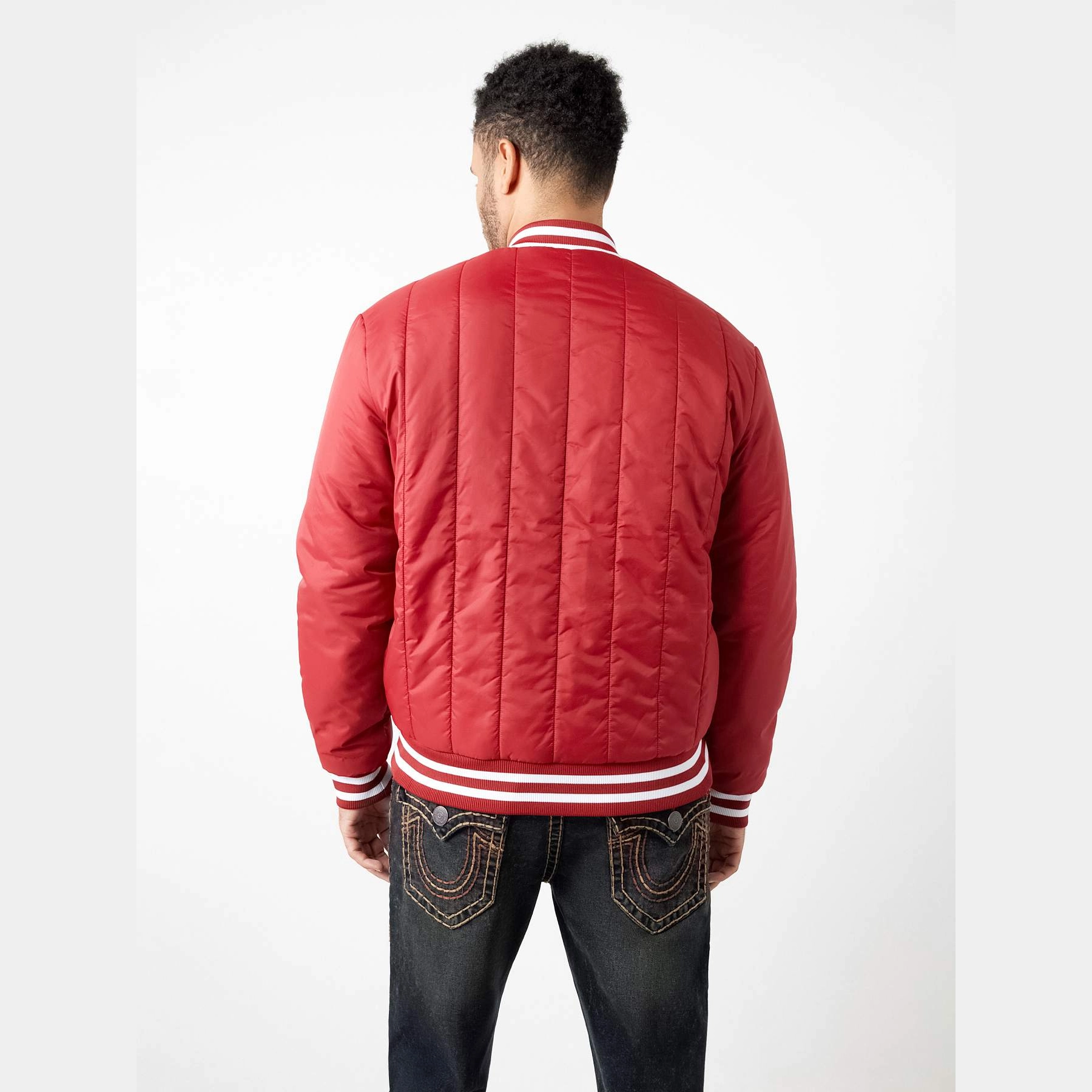 True Religion Men’s Quilted Bomber Jacket – Red