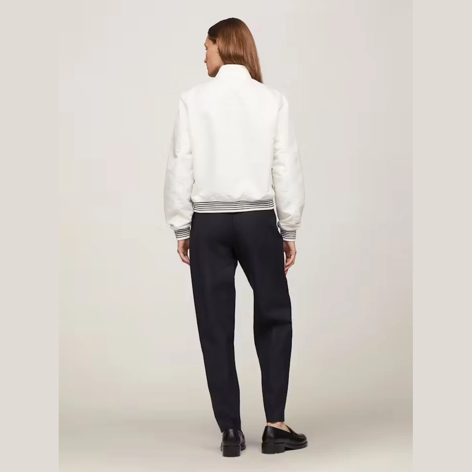 Embrace varsity-inspired vibes in this lightweight bomber jacket, which boasts practical water-repellent fabric, striped trims and bold logo detailing.