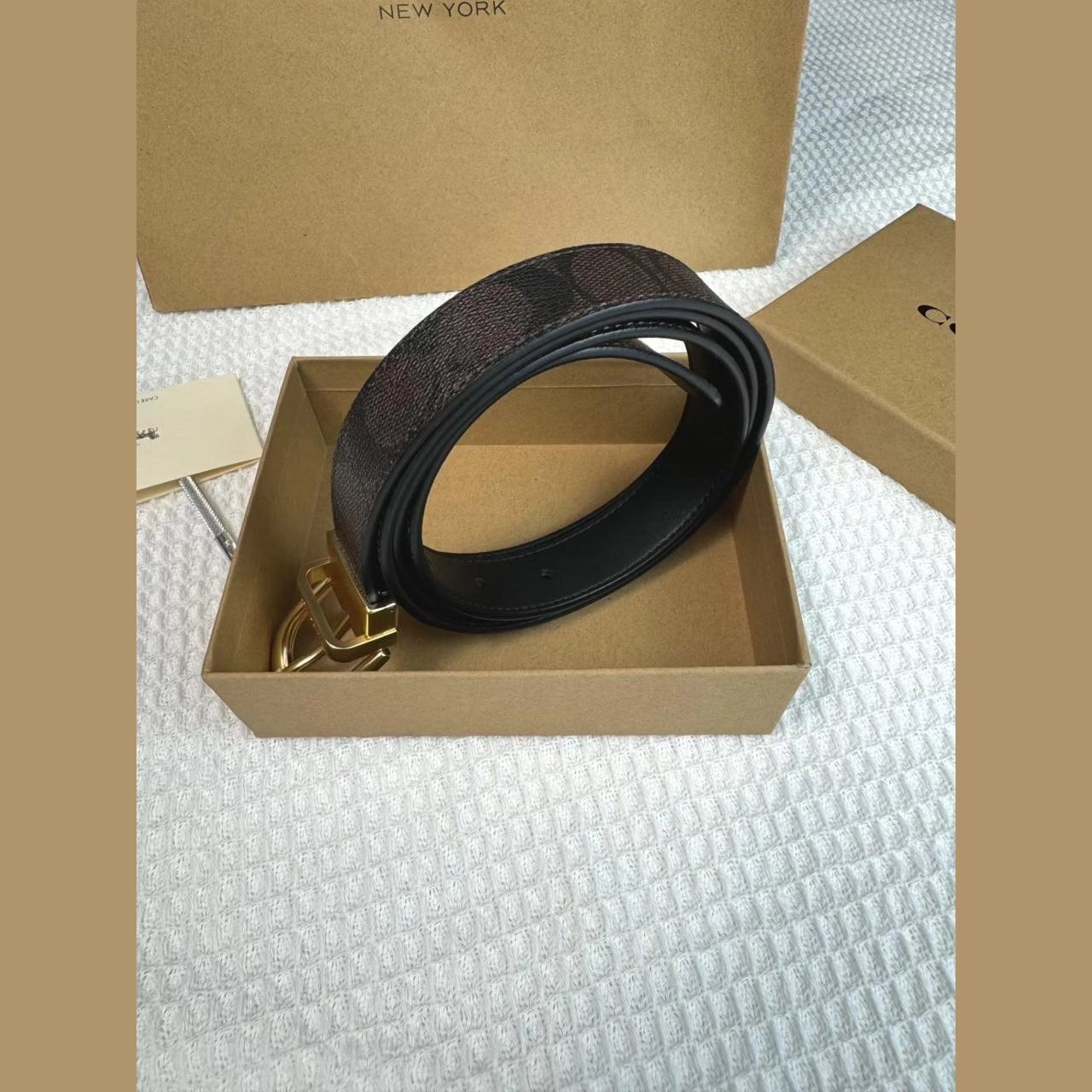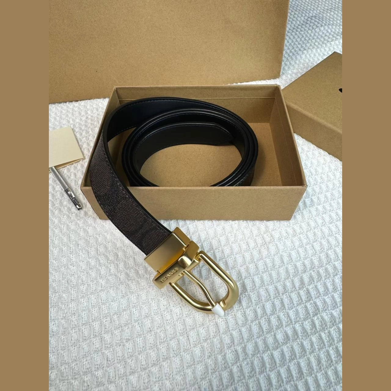حزام كوتش مصنوع من الجلد الطبيعي ذو وجهين قابل لتعديل المقاس