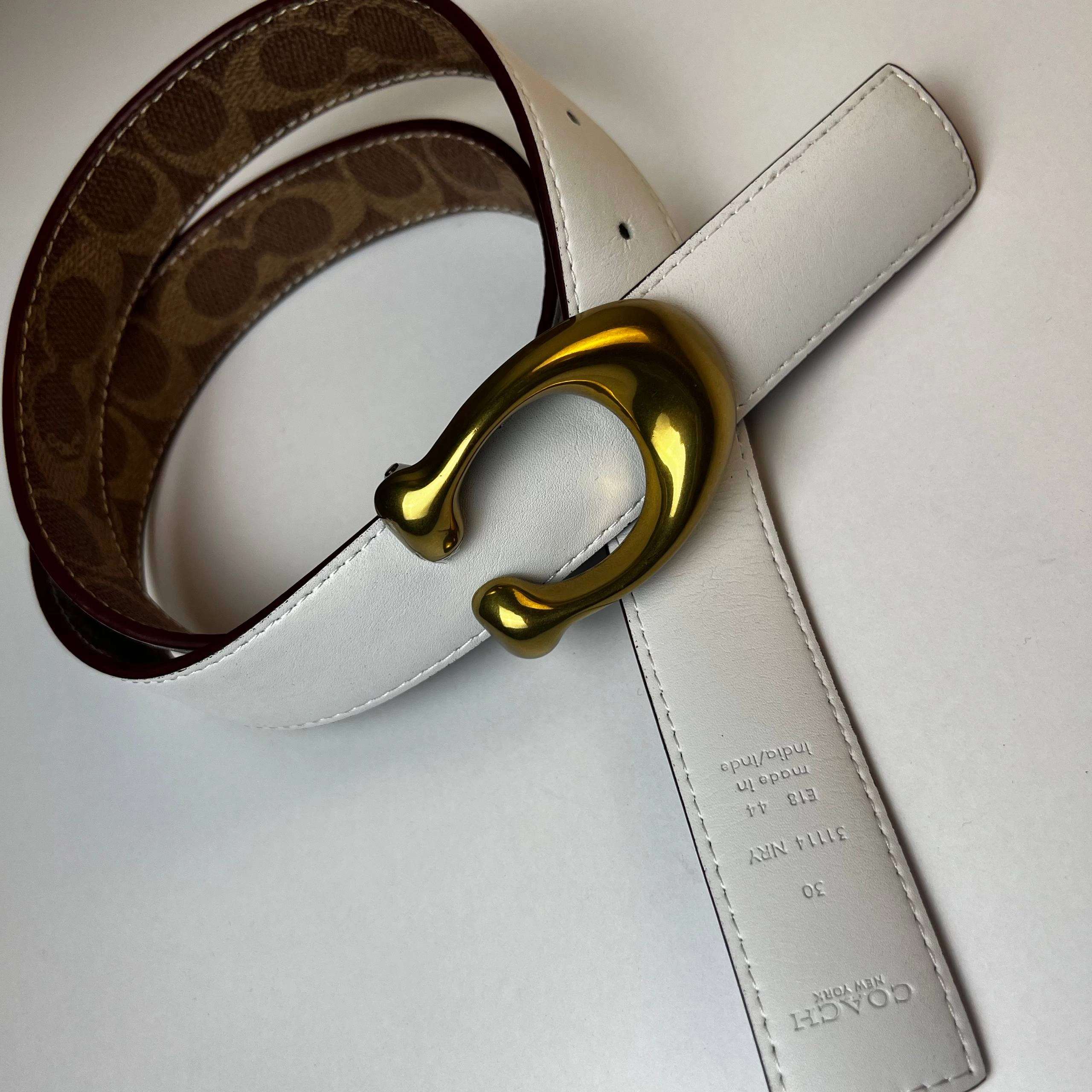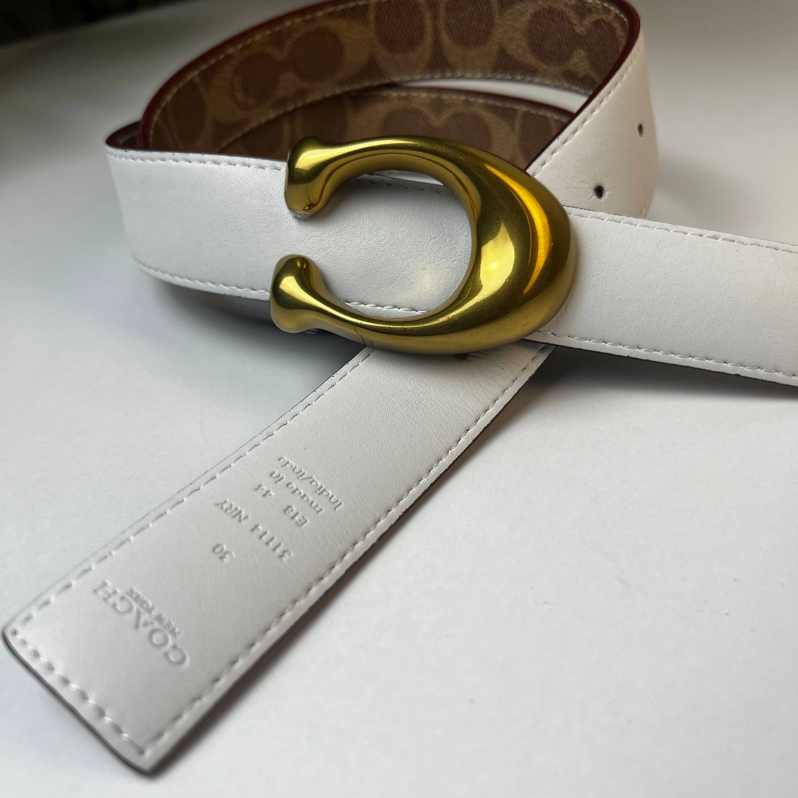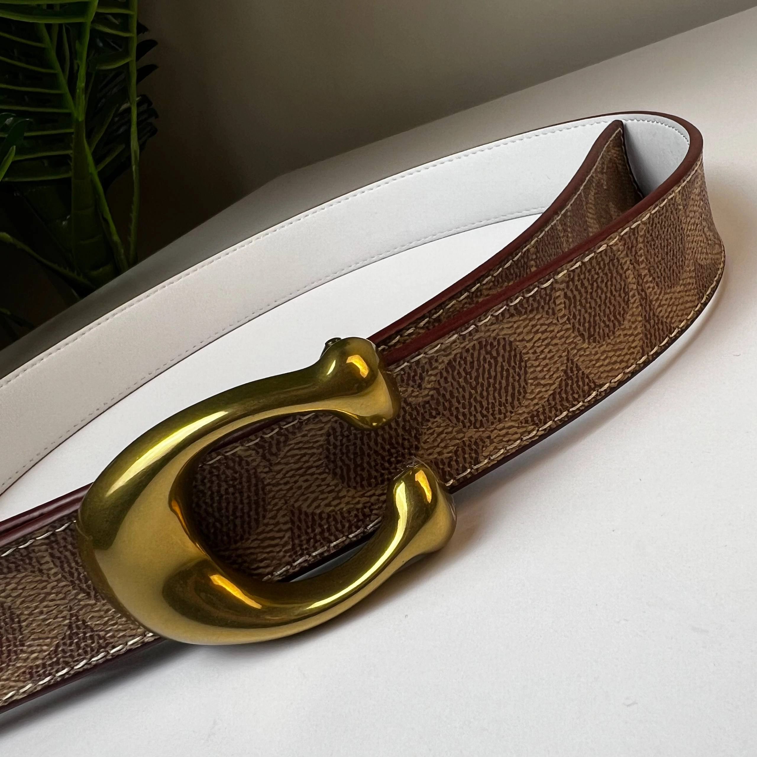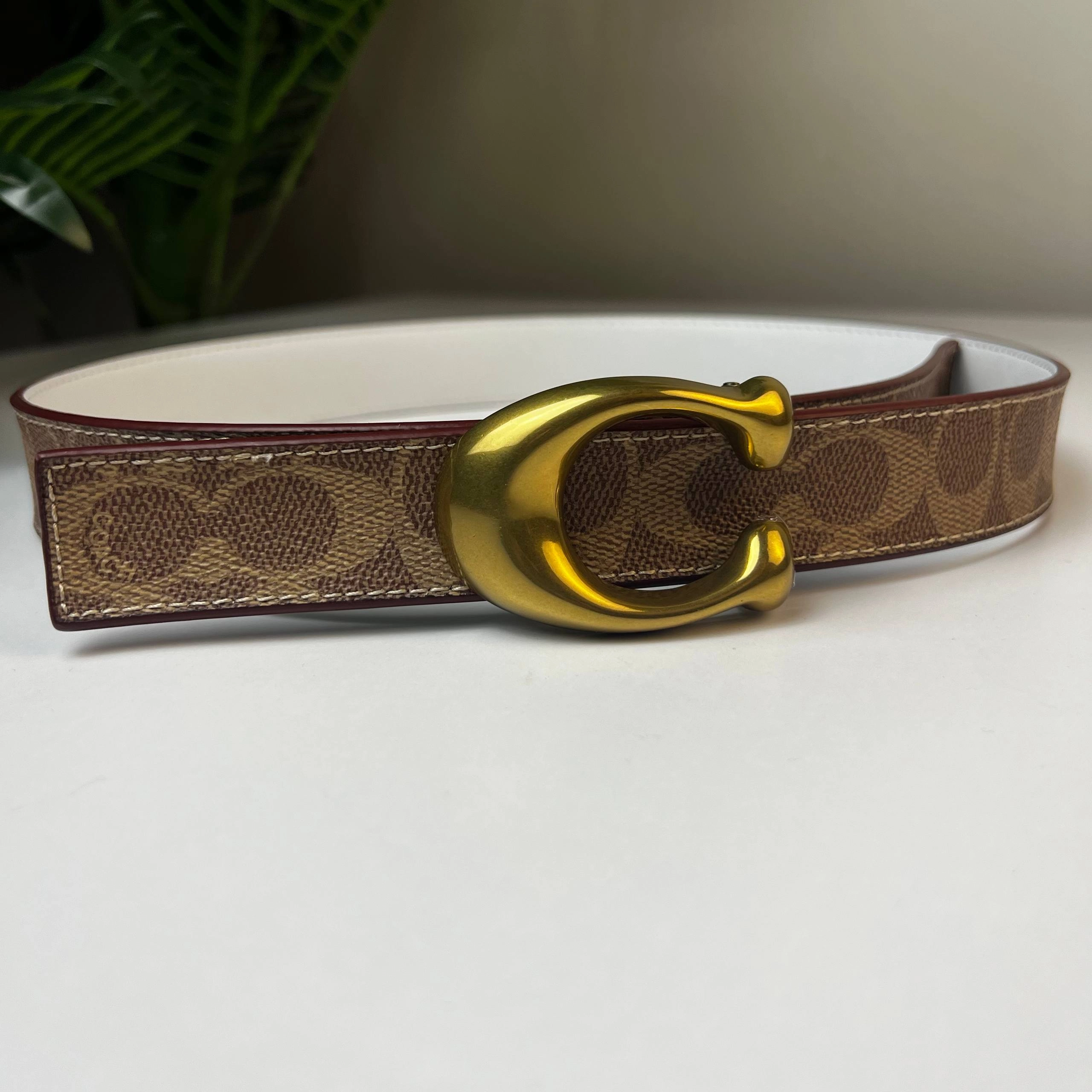 Coach Brown Signature Coated Canvas and Leather Reversible Sculpted C Buckle Cut To Size Belt