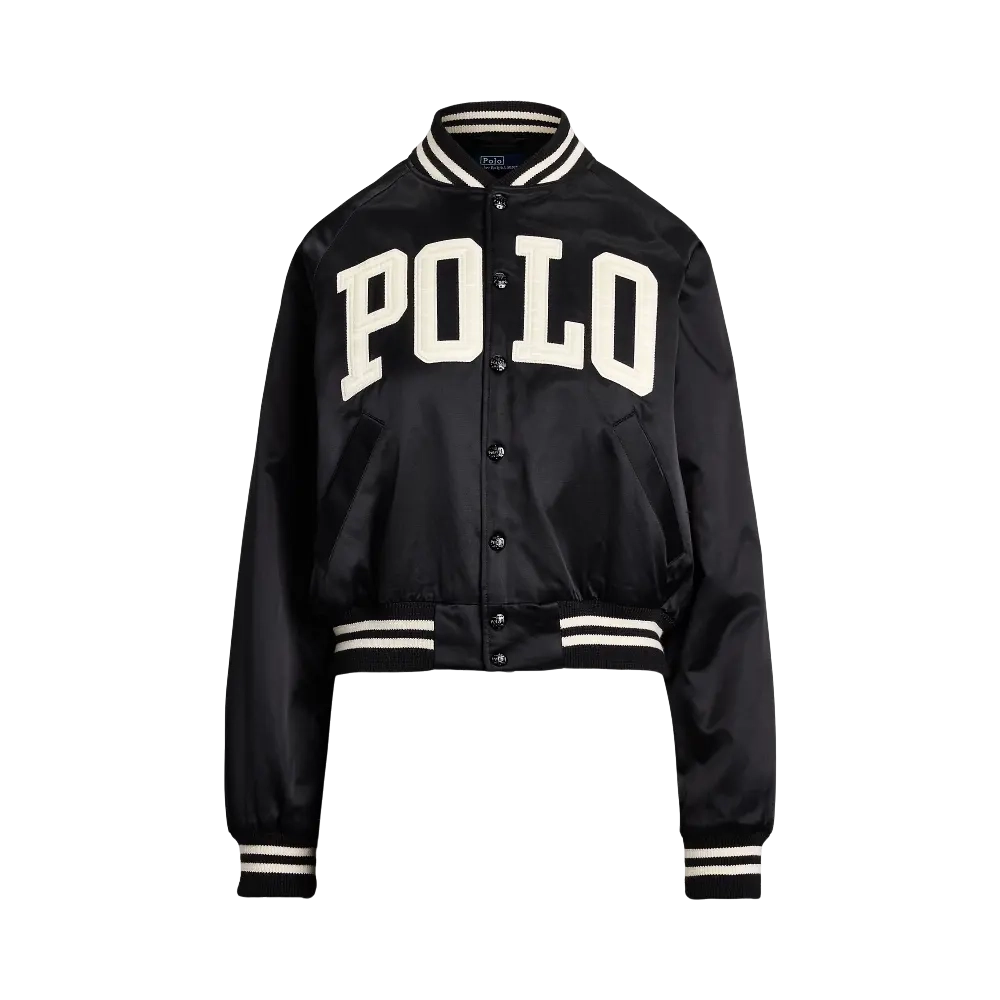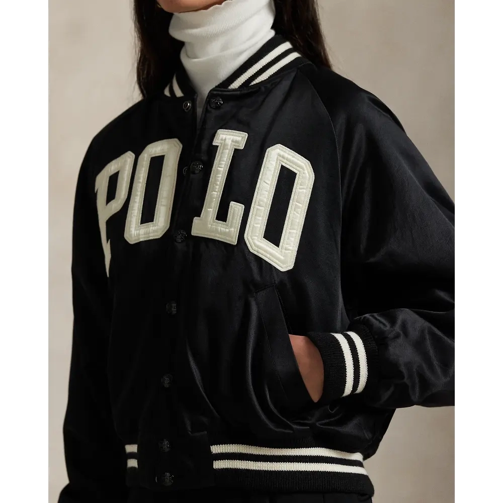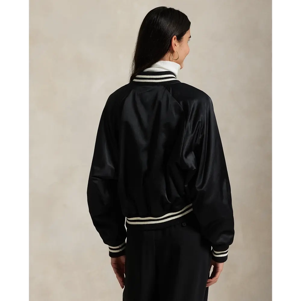 • Long raglan sleeves with striped ribbed cuffs. Two front waist welt pockets. Interior left chest welt pocket. Striped ribbed hem. Fully lined and lightly filled.