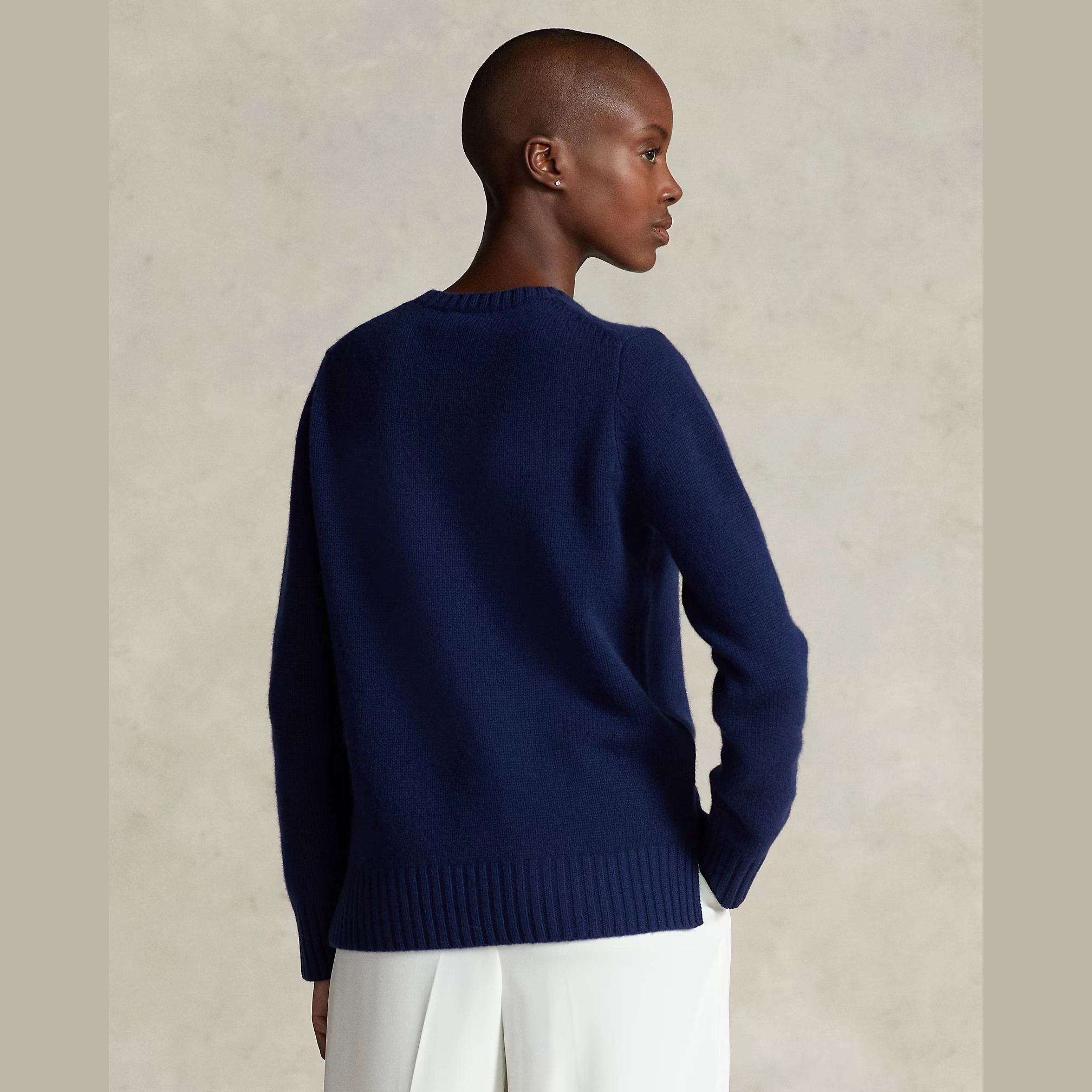 • Polo Bear intarsia-knit on the front with hand-embroidery. “RL” cross-stitched on the left hem.