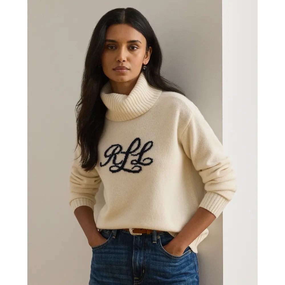 • Intarsia-knit script LRL logo at the chest.