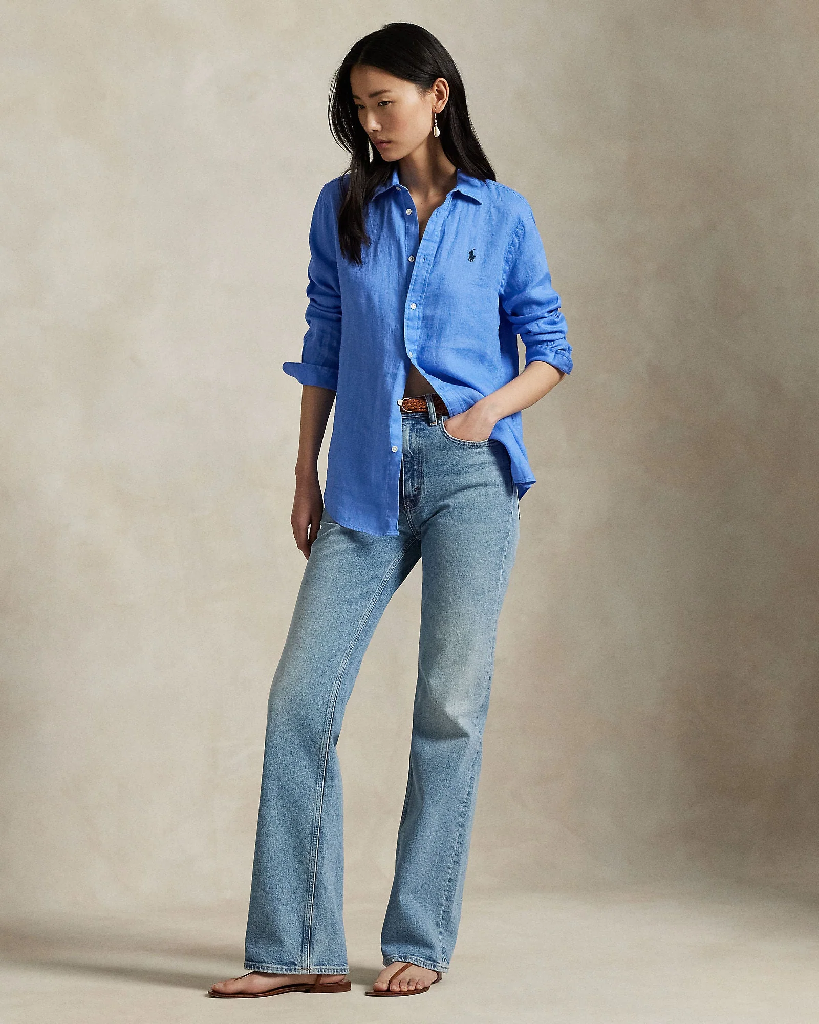 Polo Ralph Lauren Camicia In Lino Blu Harbor Island