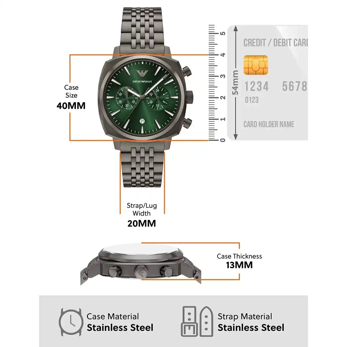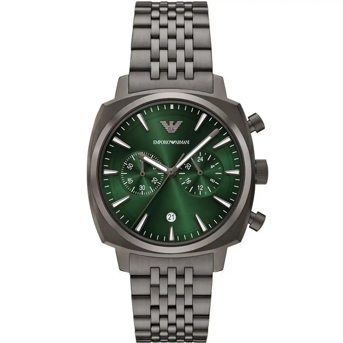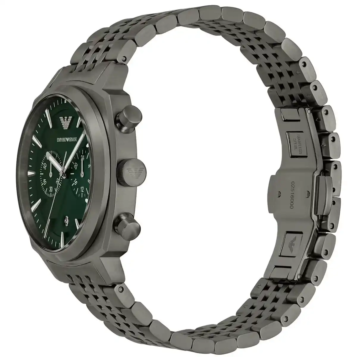 Original Emporio Armani watch for men Carlo  AR11689 Green dial , Gray Metal Strap