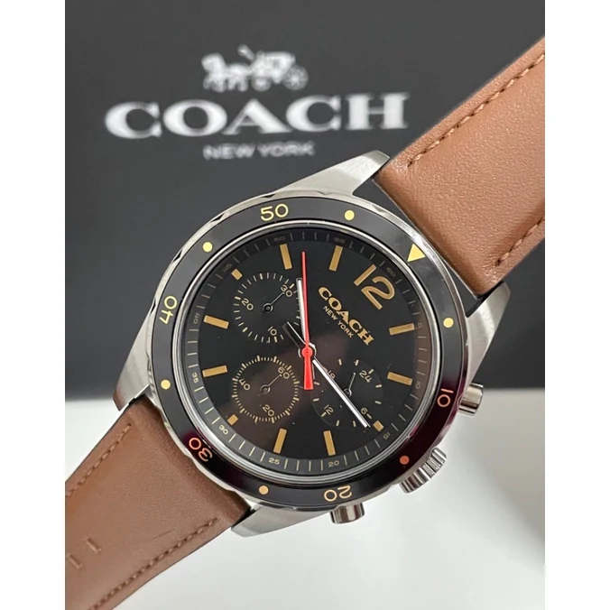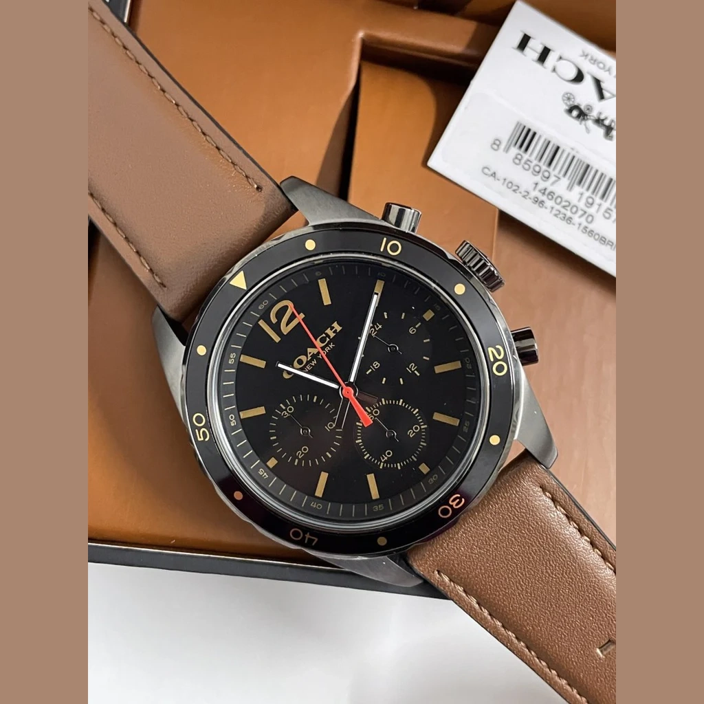 Coach Sullivan Chronograph Black Dial Brown Leather Strap Watch for Men – 14602070