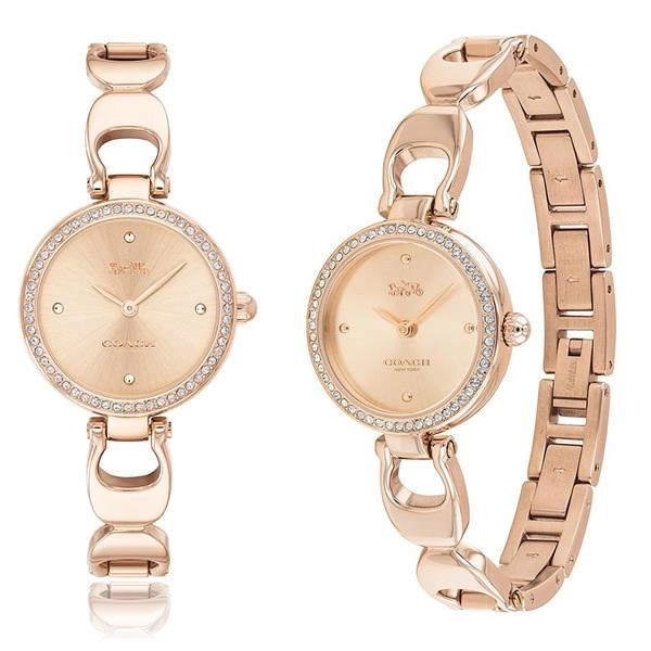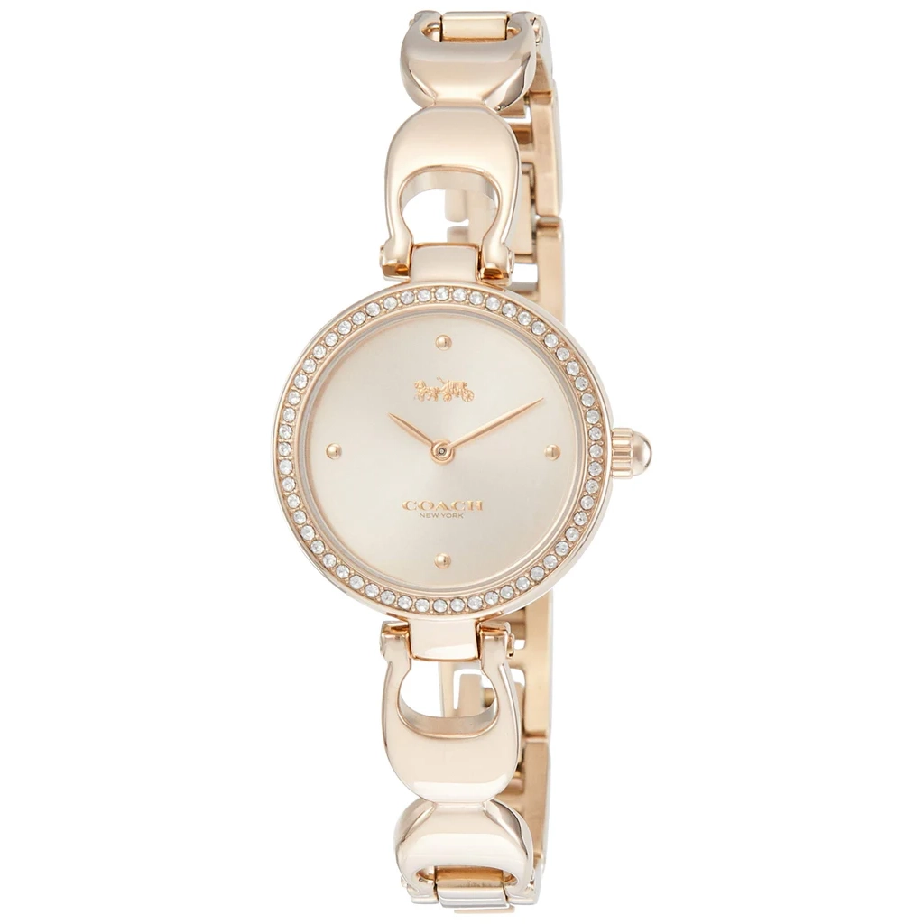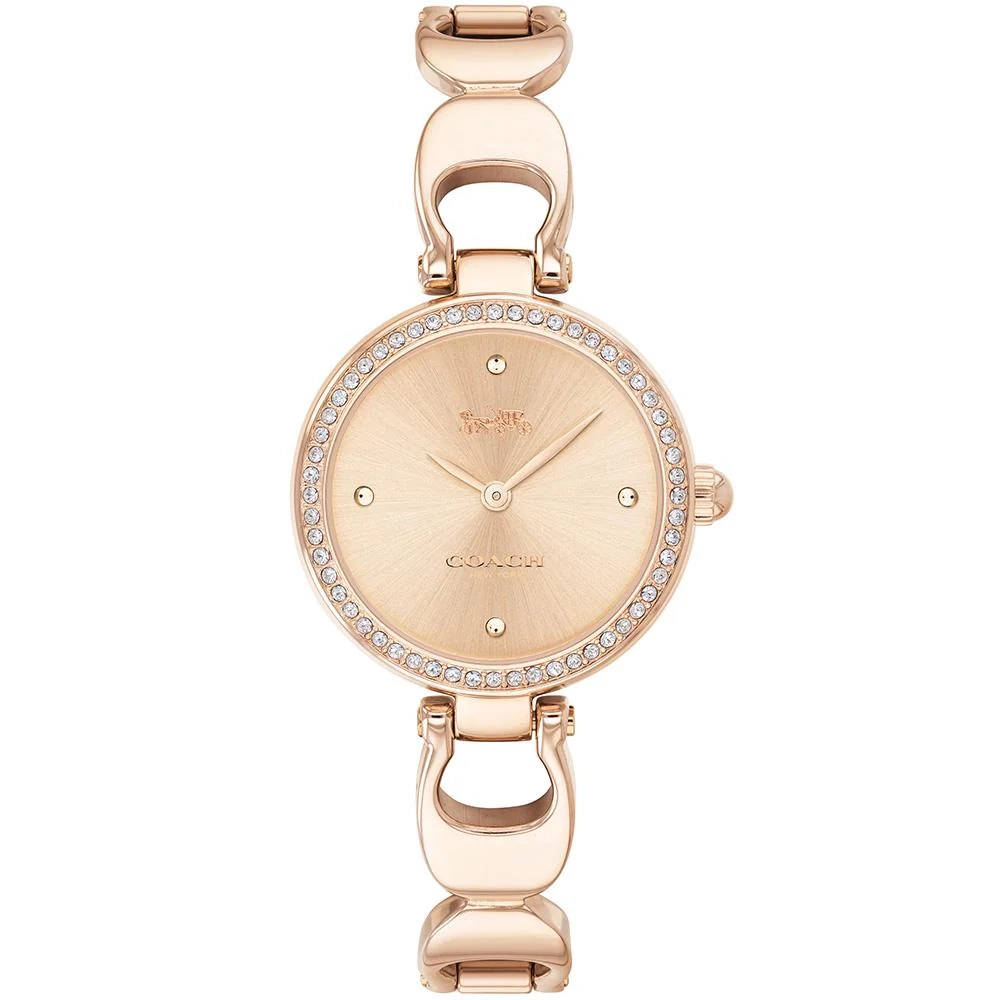 DescriptionNamed for the glamorous New York City streets, the Coach Park women’s watch is a stylish timepiece for day-to-night wear. It features a 26 mm rose gold case, gold sunray dial, sparkling Swarovski crystals, and a rose gold IP stainless steel bracelet with signature “C” detail. Perfect for elegance with everyday practicality, including water resistance up to 30 meters.