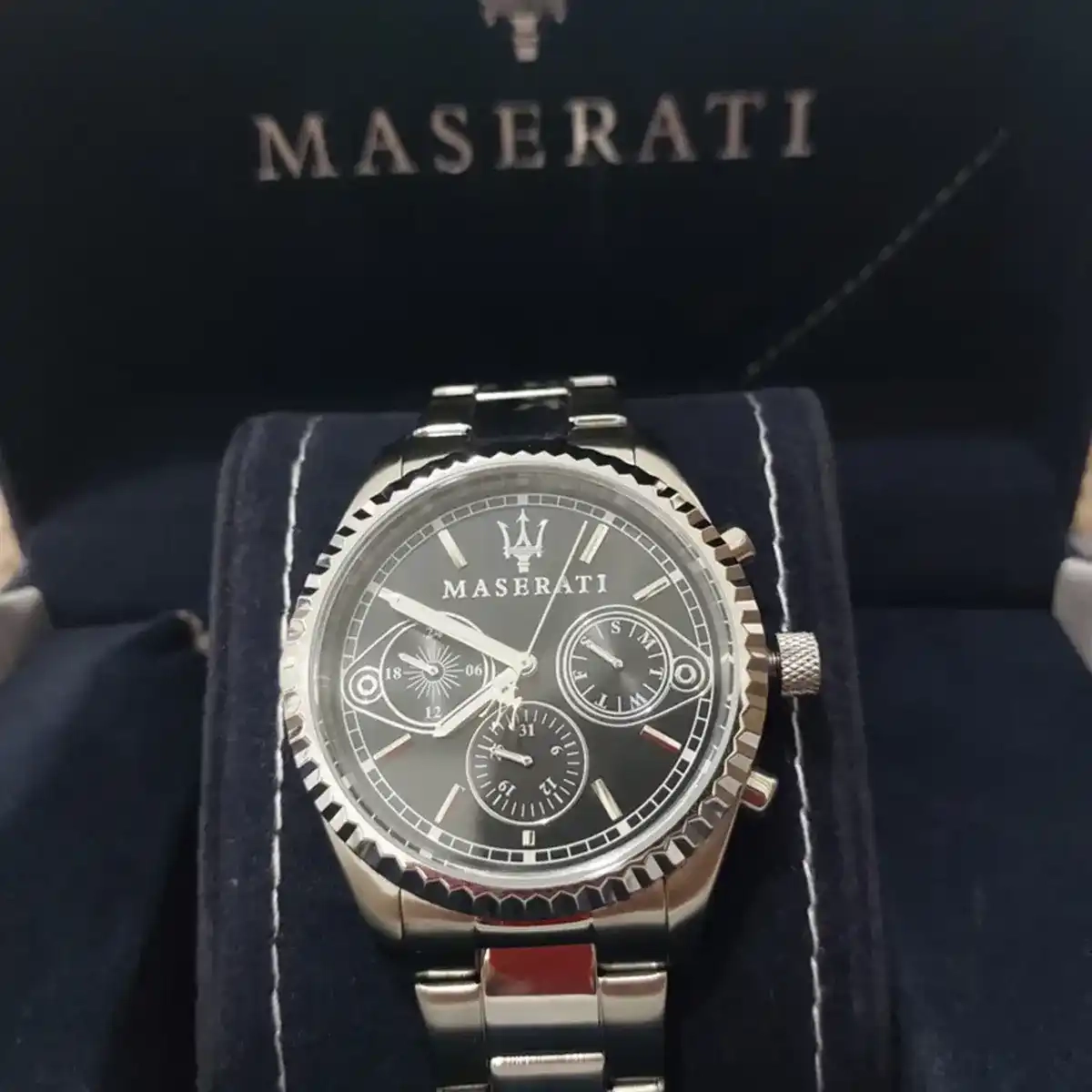Original Maserati Watch For men In Egypt Competizion R8853100014 Black Dial Silver Metal Strap . With Original packging Maserati Box + Bag