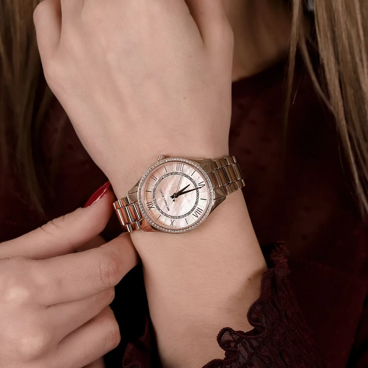 With Rose Gold dial , Featured with Bracelet Gift Set and Crystals decorated