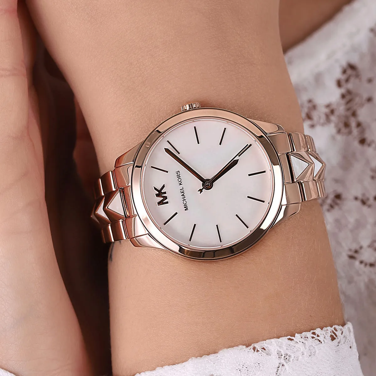 With White dial , Featured with Pyramids shapes strap and Mother of Pearl dial