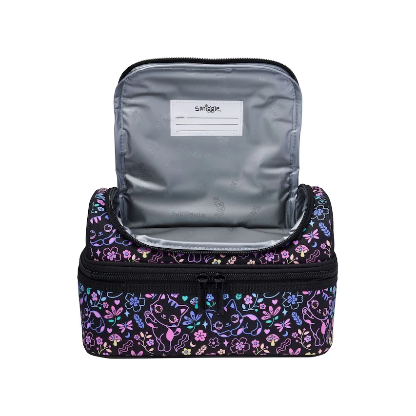 Discover the cosmos with the Smiggle Eclipse collection! Perfect for dreamers and adventurers, this collection features vibrant character designs that inspire Smigglers to dive into fun and explore new horizons! Get lunchtime ready with the Eclipse Double Decker Lunchbox. The two-tiered design helps to separate lunch from snacks, leaving plenty of space for a perfectly balanced lunch. Insulated and BPA free lining also keeps lunch fresh and ready for when hunger hits. 2 compartments with double zips. BPA free and food grade safe lining. Padded insulated lining. Internal name label. Carry handle. Keeps your lunch cool.