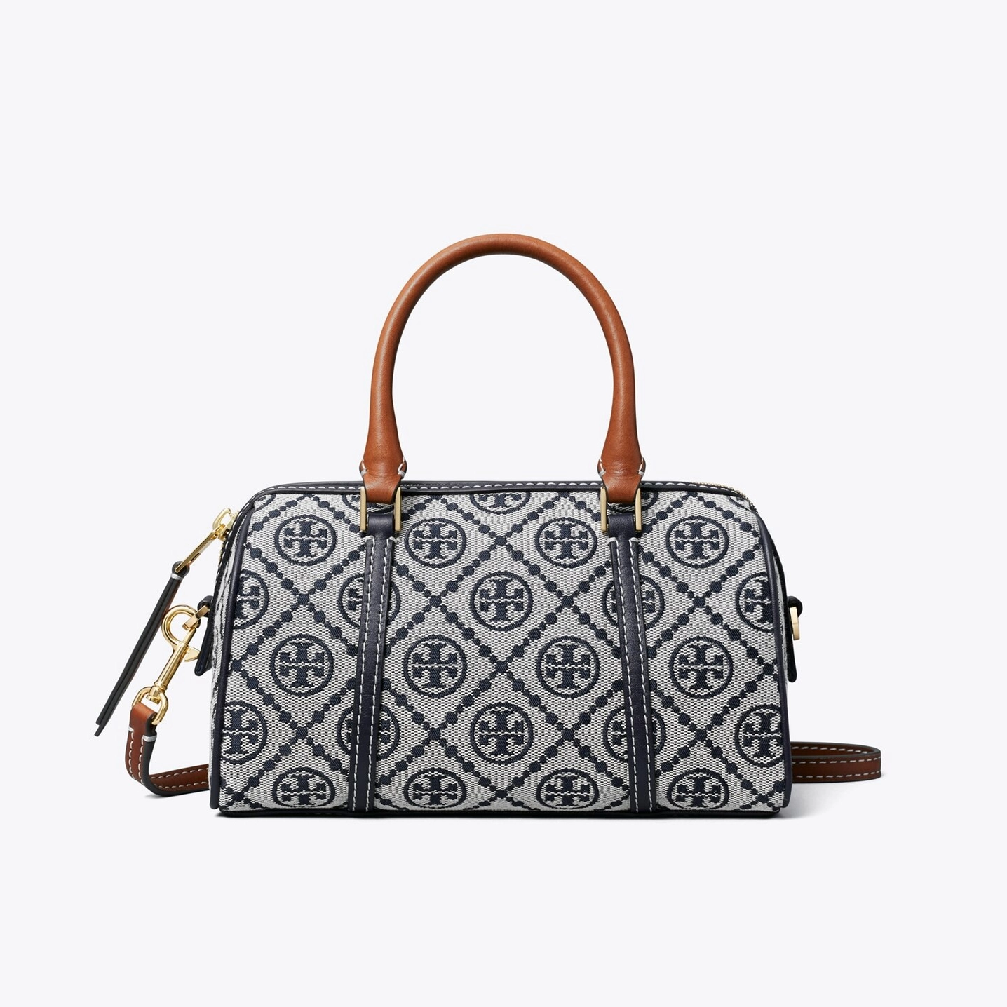 Trimmed in fine leather, the petite barrel bag has minimal hardware. Luxury meets utility in a classic silhouette. Perfect proportions in a distinctive shape that dates back to 16th-century mariners. The modern leather frame and stitch-wrapped top handles with buckle details reinforce the craftsmanship, preserving its structure and shape. Wear it with or without the removable crossbody strap.