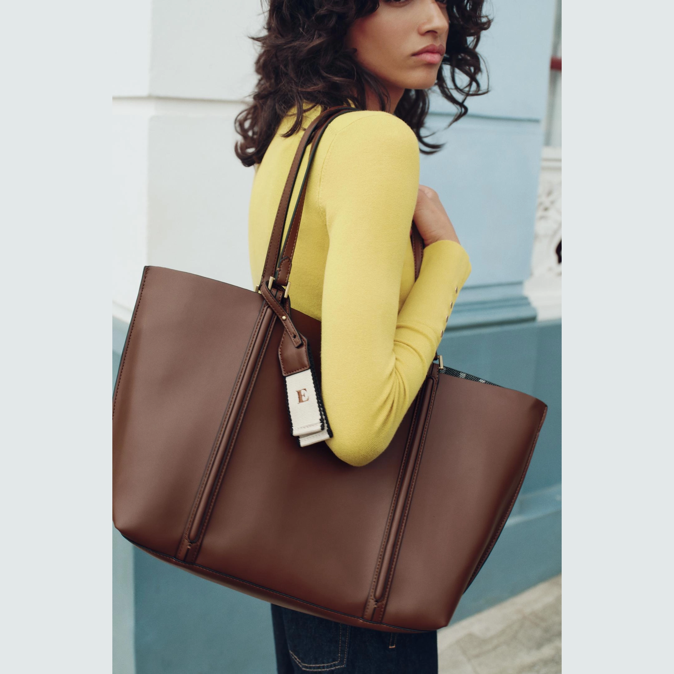 Tote bag. Shoulder strap. Hanging loop detail. Maxi interior pocket. Magnetic clasp fastening.
