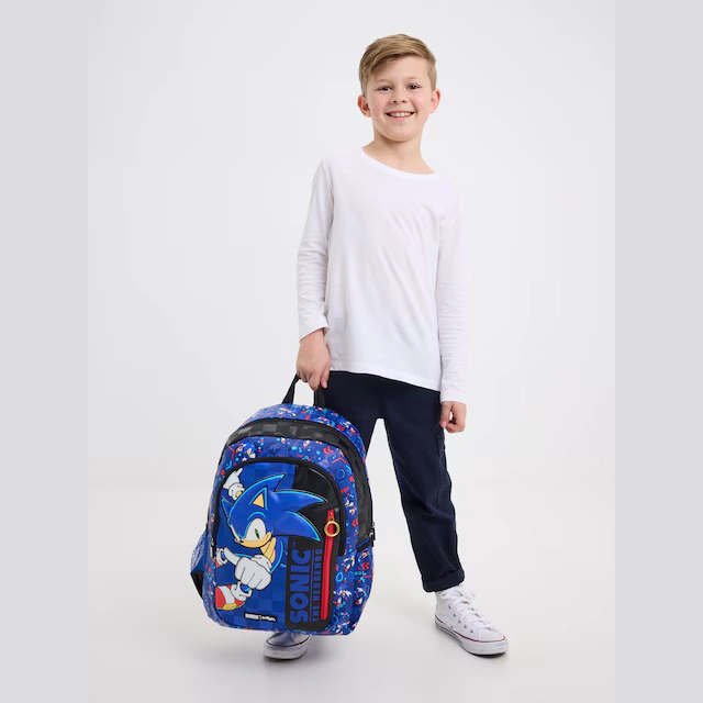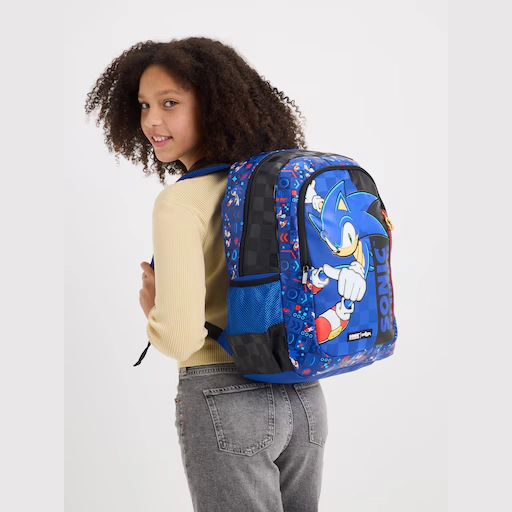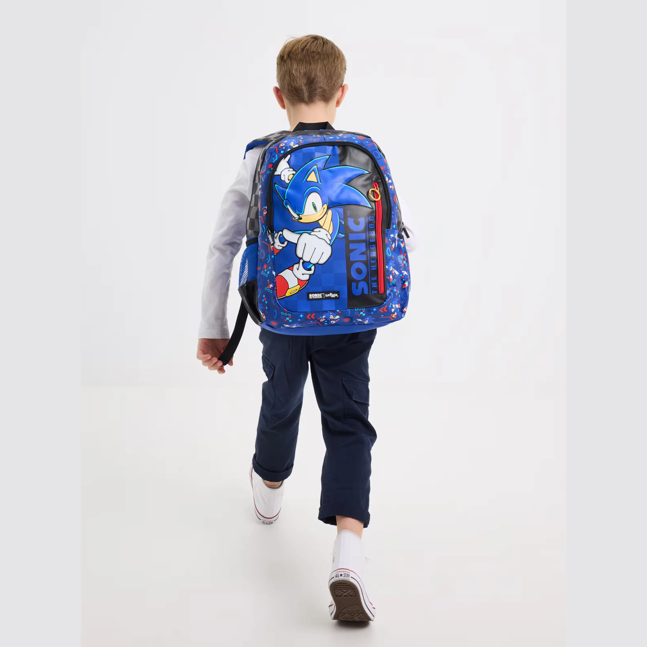 Pack essentials for school and adventure with our Sonic the Hedgehog Classic Backpack! This backpack has three zipped compartments, dual drink bottle sleeves, comfy adjustable straps and an inner laptop compartment. Check out the speedy Sonic the Hedgehog applique on the front panel and the metal gold ring zip. Complete with the bold and blue awesome graphic print and the Sonic the Hedgehog logo badge, this backpack is perfect for any Smiggler!