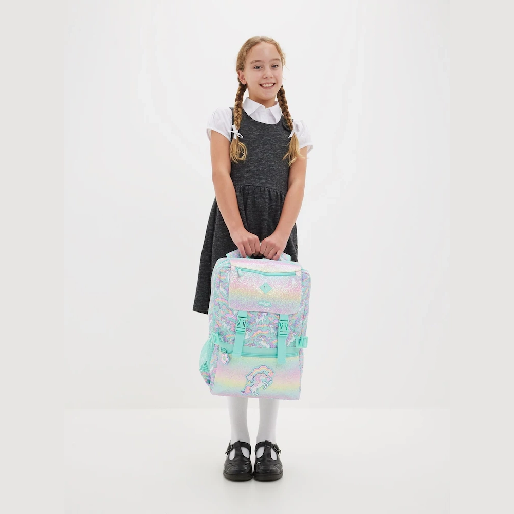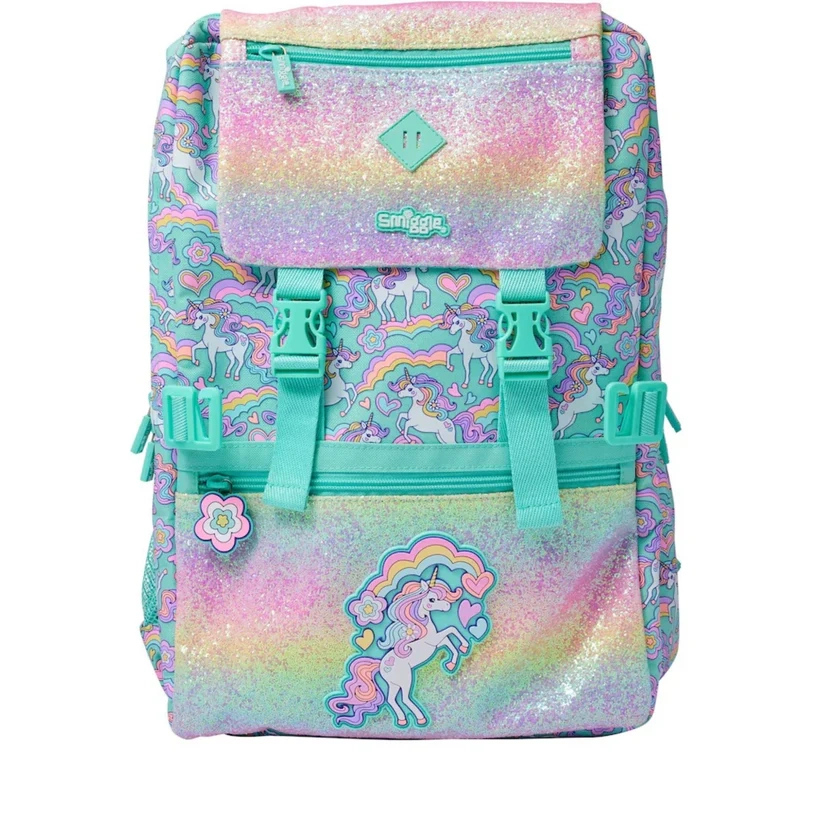 The Foldover Attach Backpack from the Smiggle Limitless collection is the perfect pick for storage and all-day exploring! It features four zipped compartments, dual drink bottle sleeves, a 15-inch laptop compartment, and a totally awesome graphic print. Plus, features a super handy clip-on strap that attaches to our Limitless Square Attach Lunchbox for easy snack access and extra storage space. School mornings, travel packing and more are set to be a breeze with this backpack!