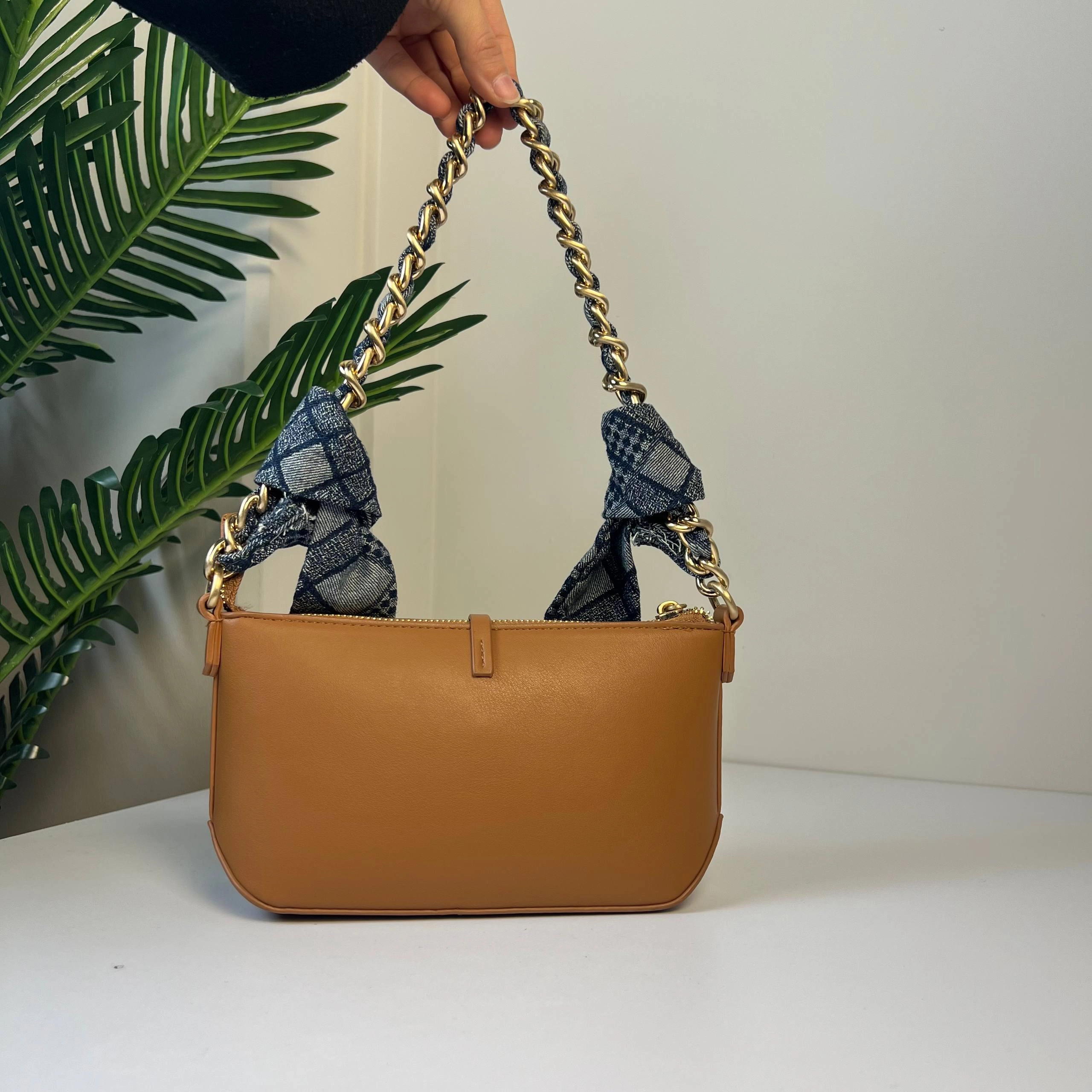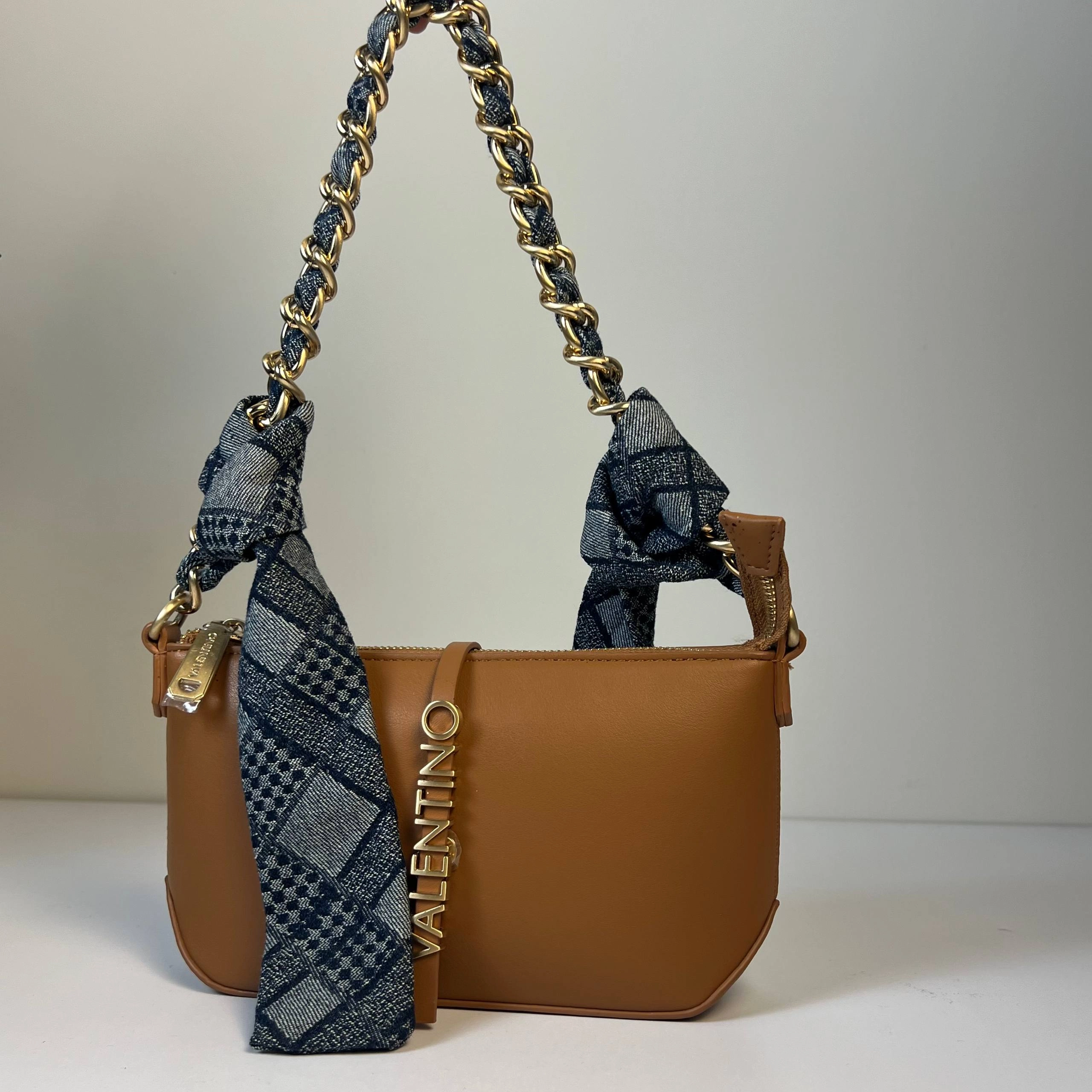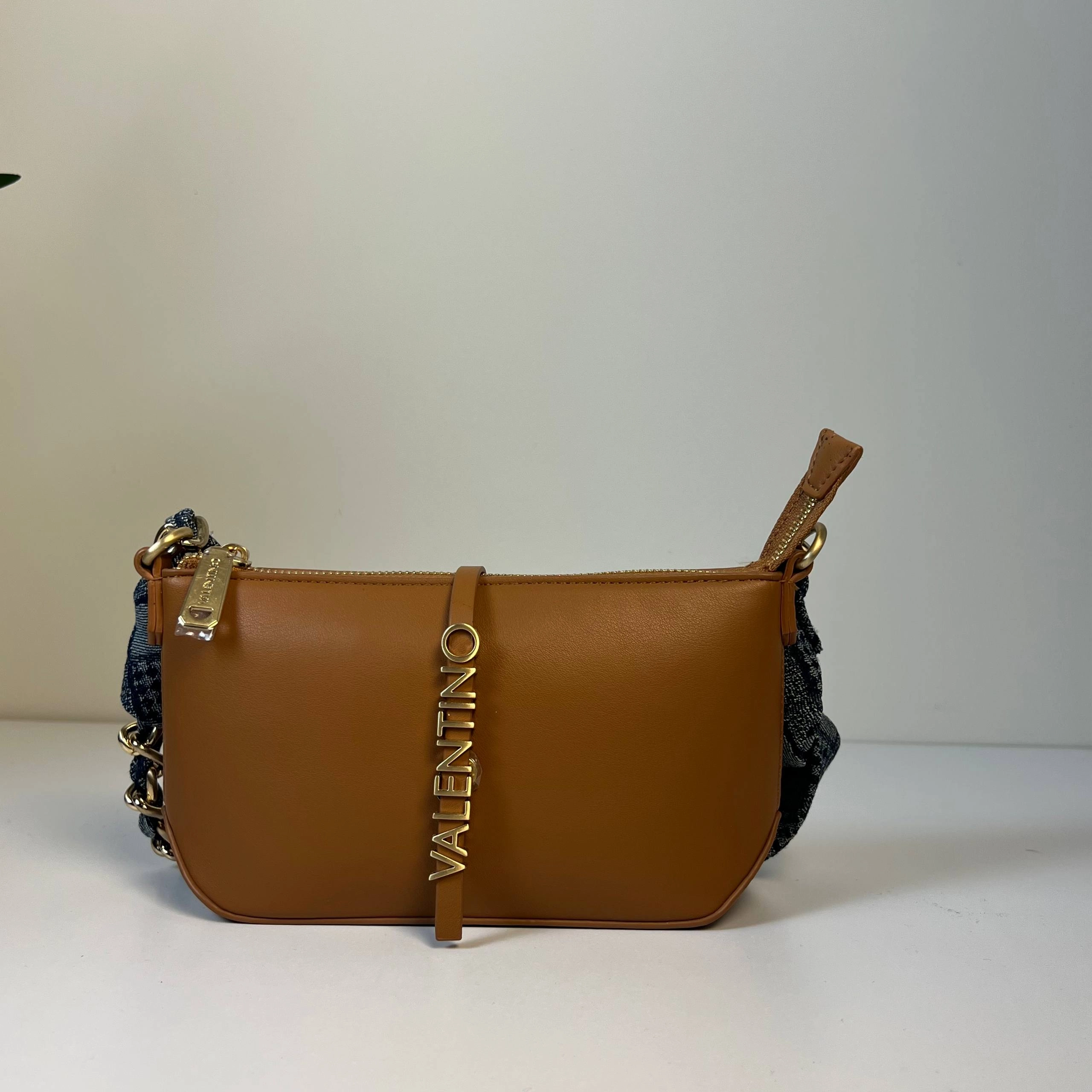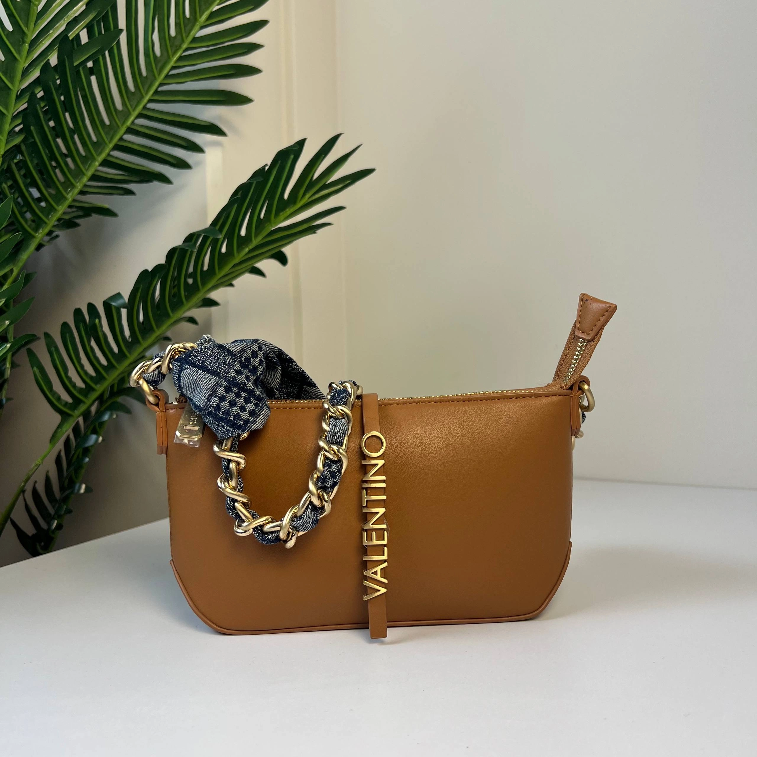 The Song crossbody bag by Valentino Bags is made of synthetic leather. It features a main compartment with zip closure. The interior is spacious and includes a zip pocket. On the front exterior, it is embellished with the brand’s gold-tone metal lettering. It comes with an adjustable and removable logo-textured fabric shoulder strap.