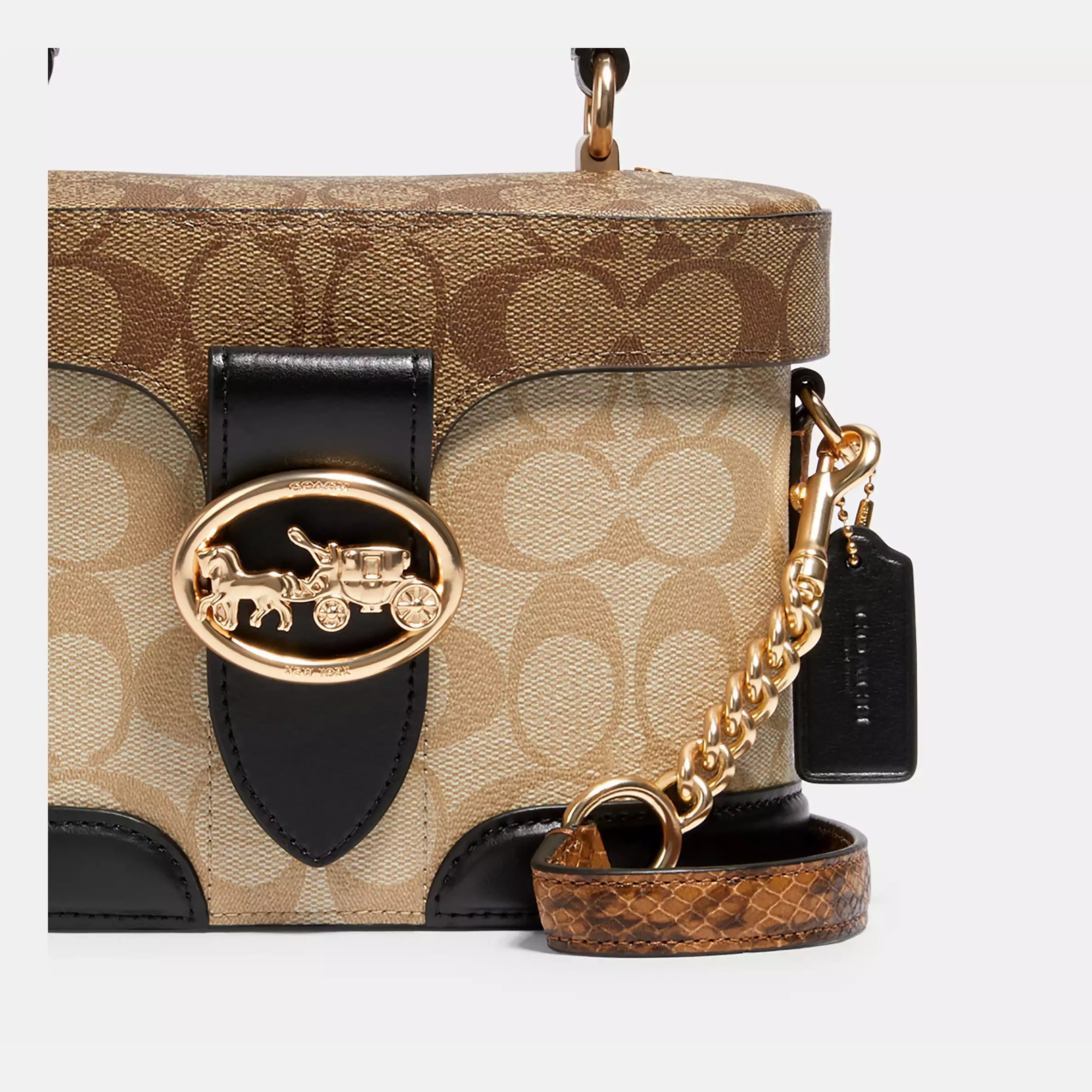 • Signature coated canvas, smooth leather and snake-embossed leather