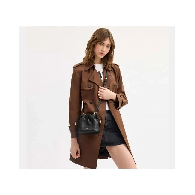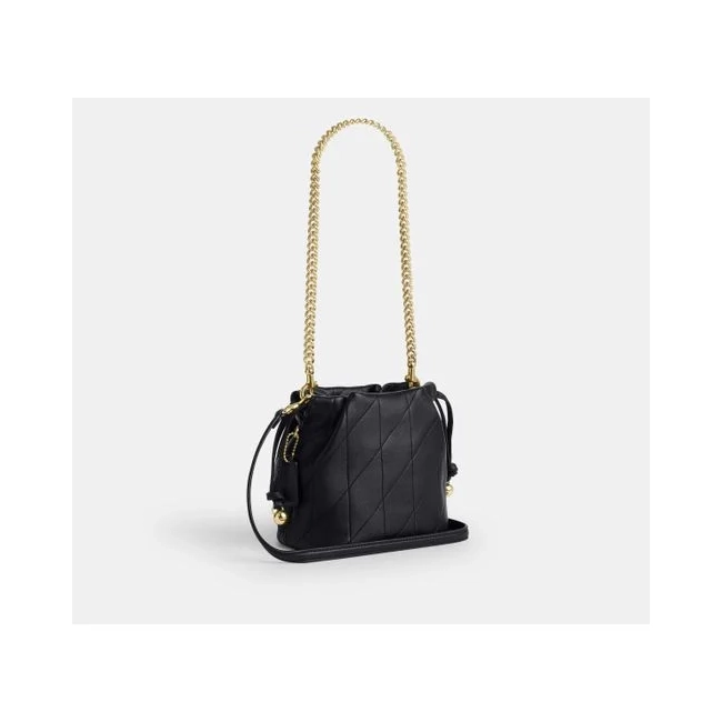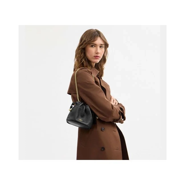 Women’s Faye Mini Drawstring Bag in Black | Leather Colour: black