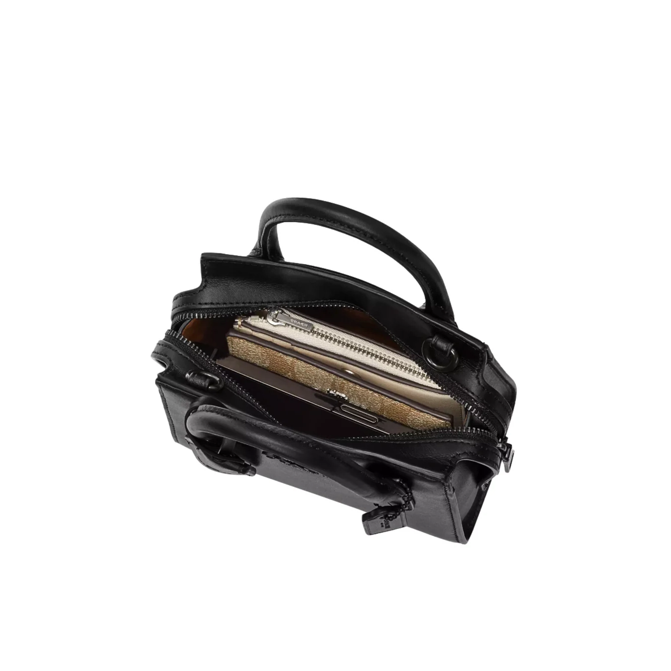 • Zip closure, fabric lining