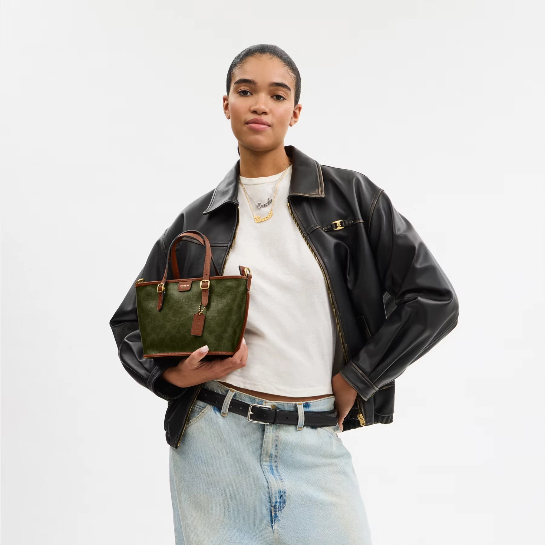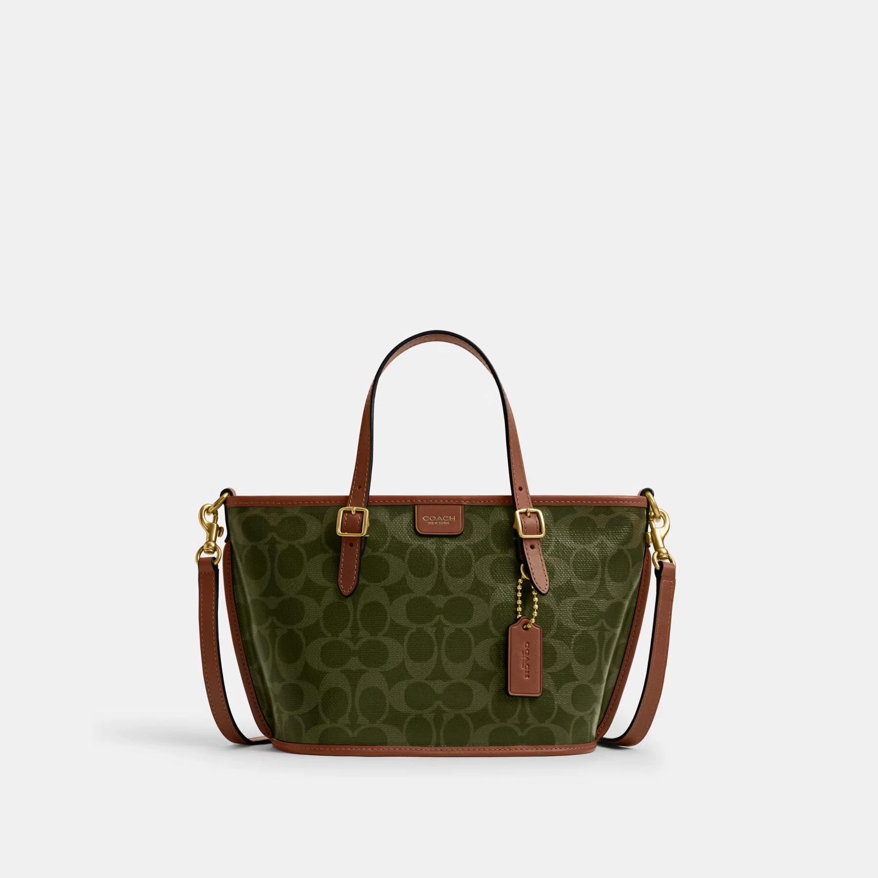 Inspired by the fast-paced energy of New York, the Taxi Tote is designed for life on the move. Ideal for workdays, weekends, and everywhere in between, this compact carryall is made from ultra-lightweight woven Signature canvas and vegetable-tanned leather. It offers space for everyday essentials and features a zip-top closure, adjustable top handles, side seam binding for structure, and a detachable strap for crossbody wear.