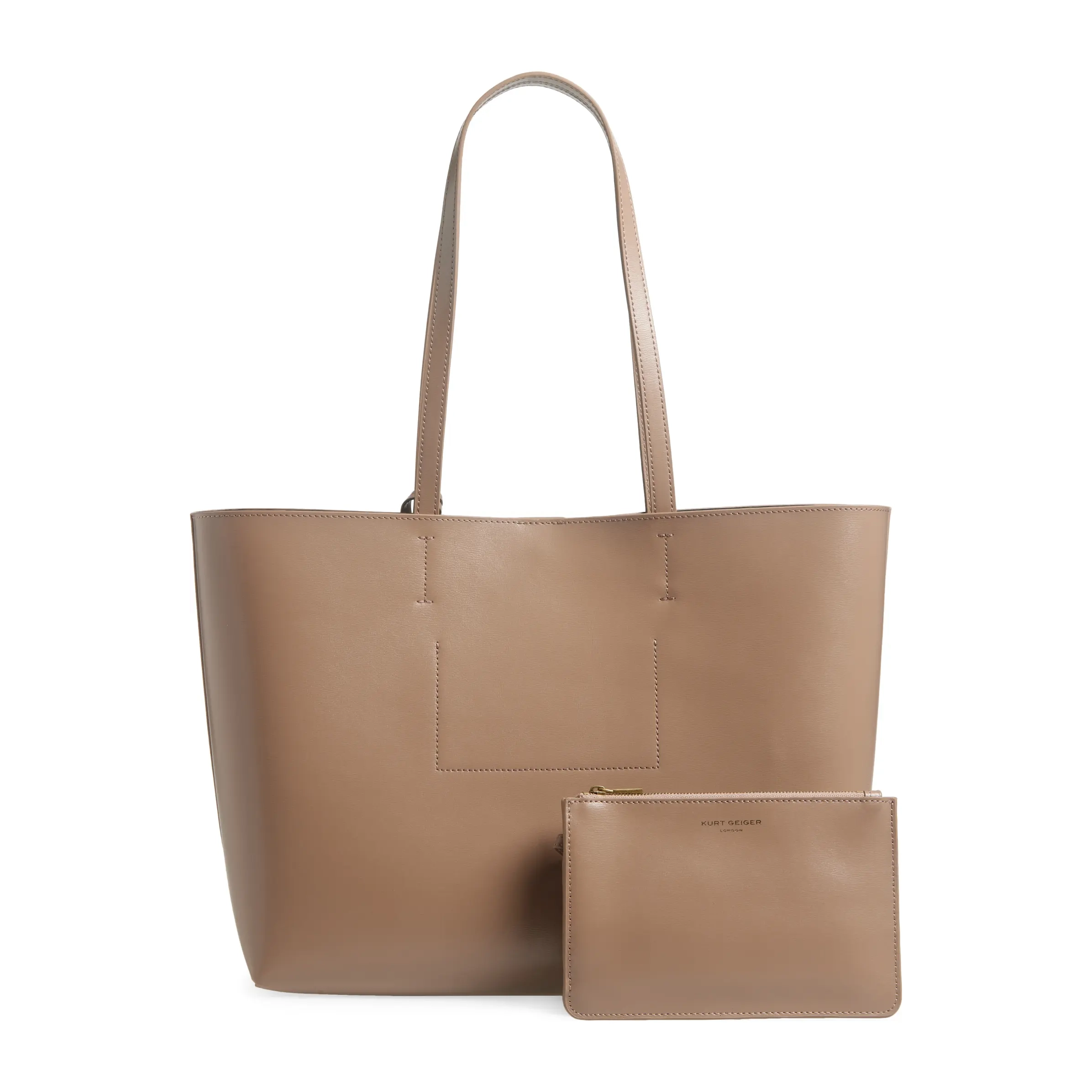 Logo accents and a crystal-encrusted eagle head make a signature statement on a spacious leather tote fitted with a removable zip pouch for easy organization.