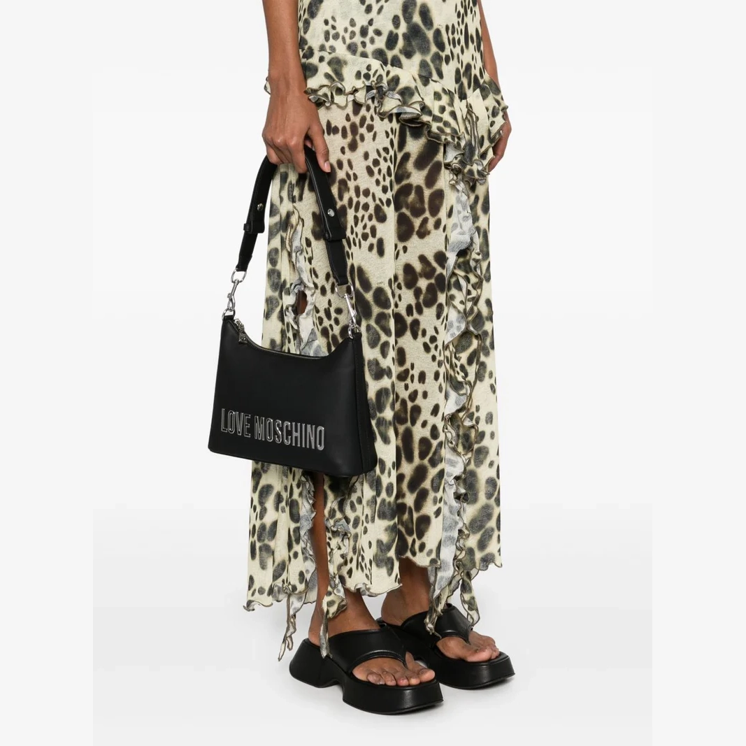 Make a statement with Love Moschino’s Bold Love bag. Mindfully made from faux leather, the silhouette shimmers with gold-tone hardware and playful logo lettering, and offers multiple carrying options with a top handle and detachable chain strap.