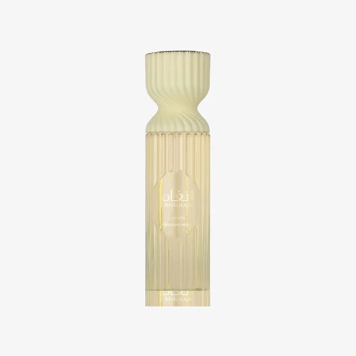 رذاذ جسم خفيف مستوحى من عطر أنغام الأصلي، يبدأ بنوتات حارّة منعشة من اليوسفي والزنجبيل والفلفل الوردي تعطي إحساس حيوي وأنيق. في القلب ينفتح مزيج غورماند من البرالين واللافندر والكاكاو والياسمين لدفء كريمي لذيذ، ثم تستقر على قاعدة ناعمة من الفانيليا والعنبر والمسك تضيف راحة طويلة. مثالي للنساء اللي بيحبوا رذاذ خفيف للاستخدام اليومي مع نفس طابع عطر أنغام الفاخر.