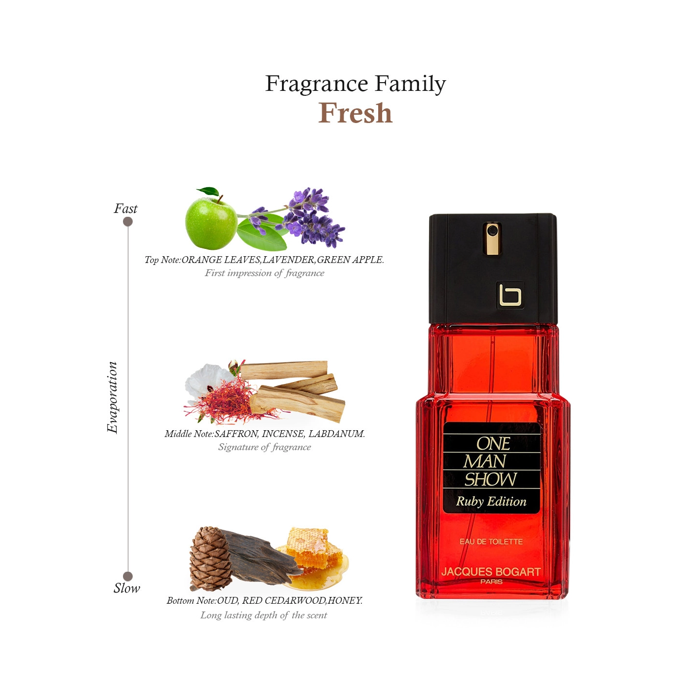 عطر رجالي عصري وجريء من دار جاك بوجارت، يتميز برائحة عطرية حارة وخشبية مع لمسات فاكهية دافئة، ليمنح الرجل حضورًا قويًا وأنيقًا، مناسب للاستخدام اليومي والمناسبات غير الرسمية.