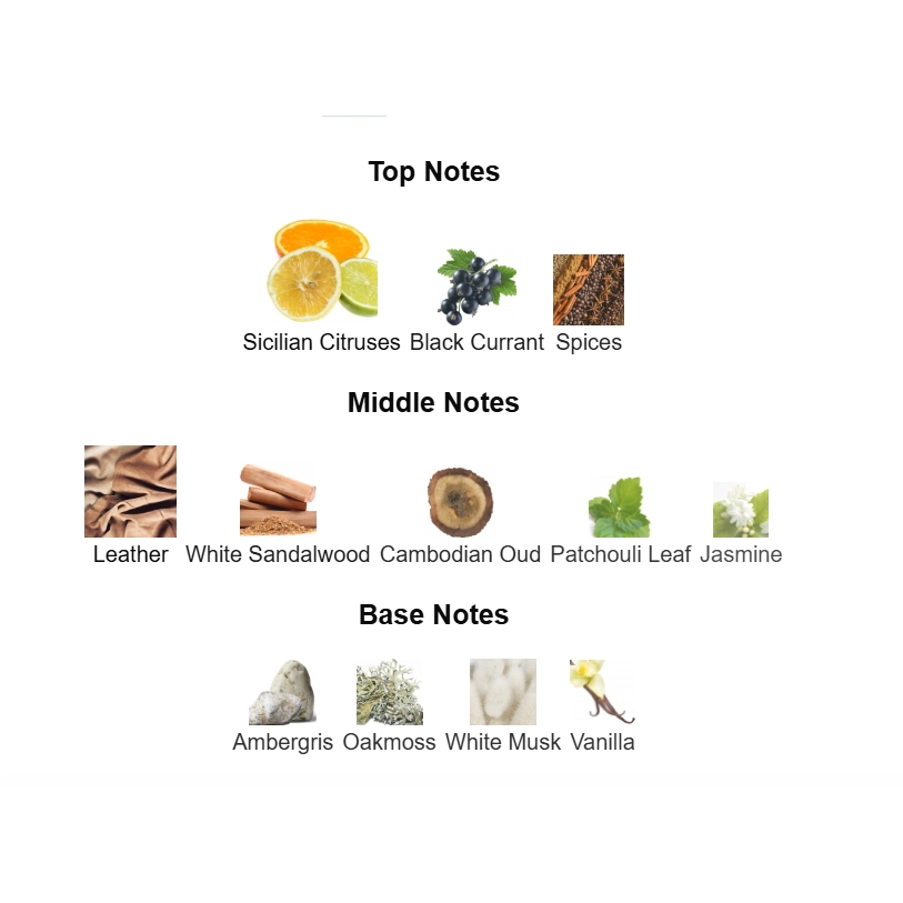 العطر يبدأ باندفاع منعش من الحمضيات والكشمش الأسود، ثم يتطور إلى قلب غني يجمع بين الجلد والأخشاب والعود، ويستقر في نهاية على قاعدة دافئة عنبر‑فانيلا‑مسكية مع لمسة طحلب خشبية. الثبات قوي، والفوحان متوسط إلى قوي — خيار مثالي للسهرات والمناسبات الخاصة أو لمن يحب عطراً ملحوظاً.