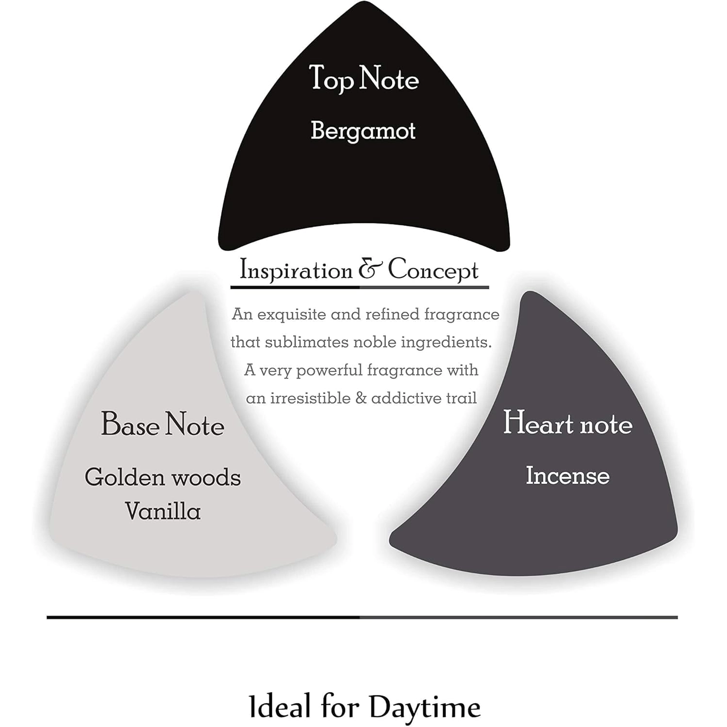 مثالي للمناسبات المسائية، الخروجات الخاصة، والعمل، ويناسب فصلي الخريف والشتاء، وللرجل الذي يفضل العطور الدافئة ذات الطابع الفخم وغير المزعج.