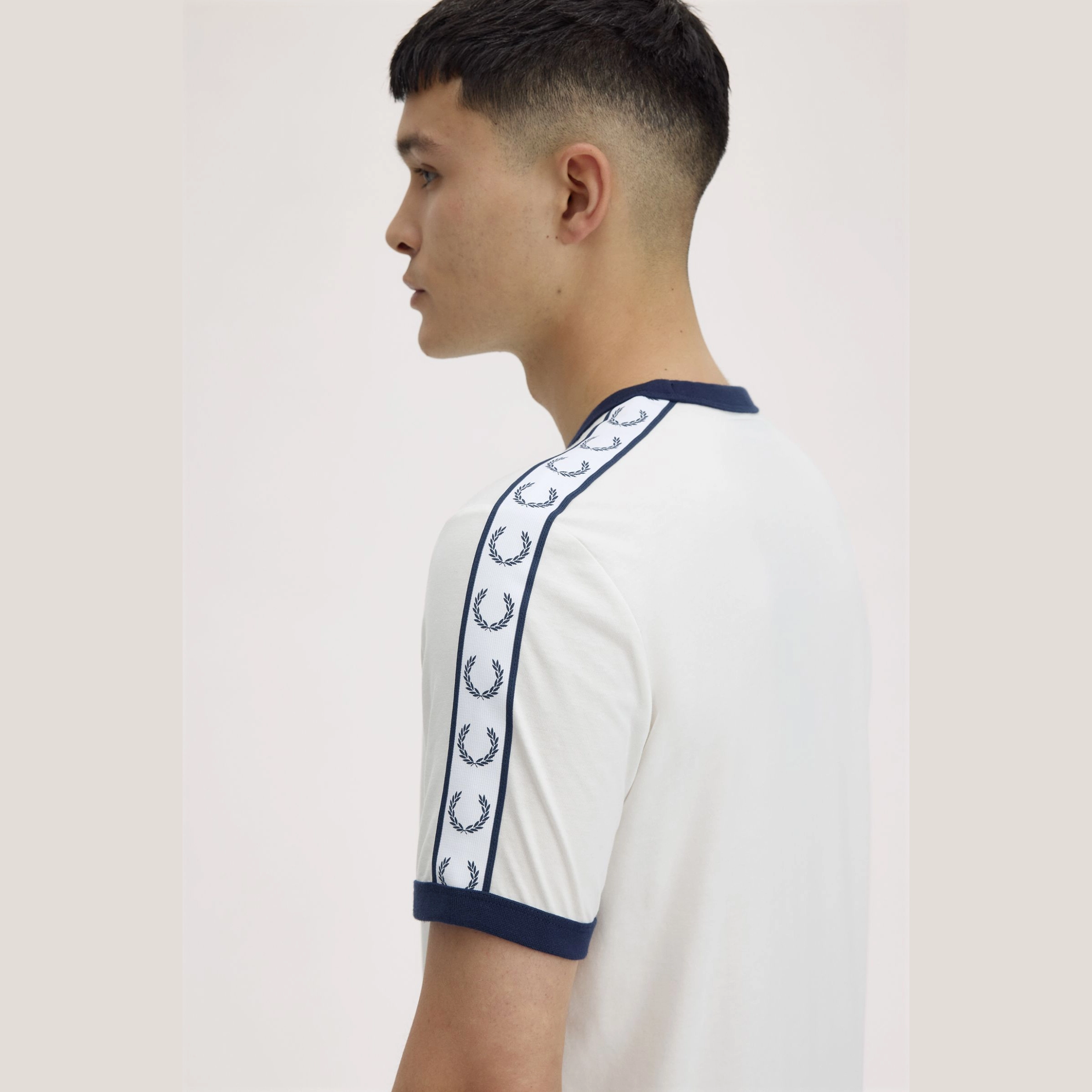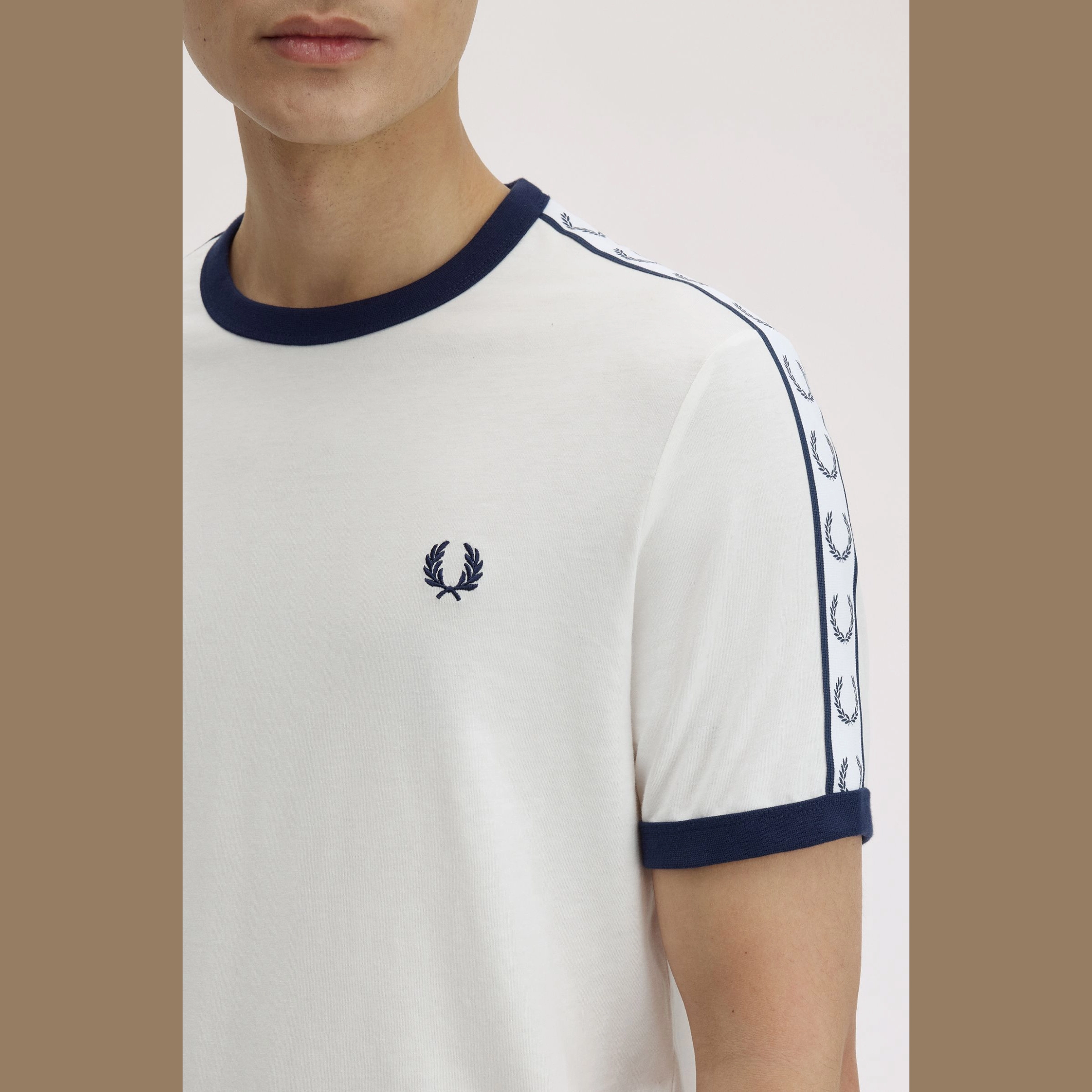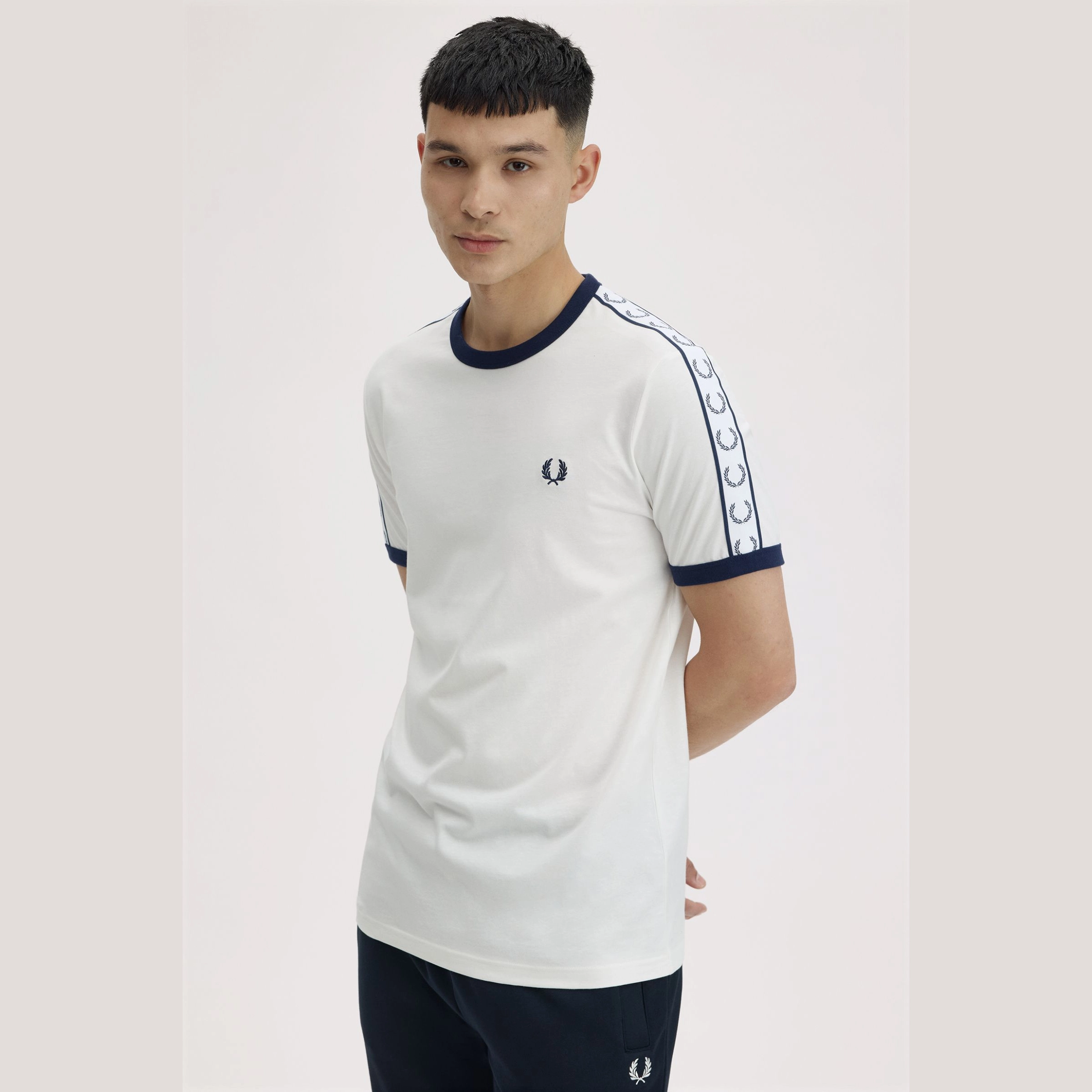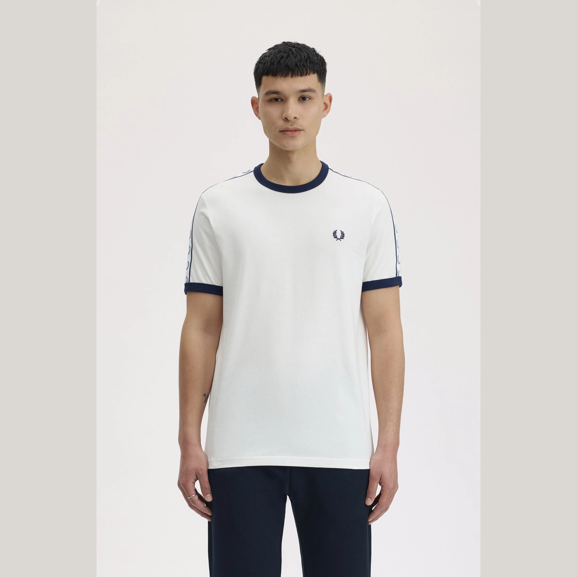 Defined by its contrast rib neck and cuff, our ringer t-shirt is trimmed with our original Laurel Wreath track tape at the sleeve.