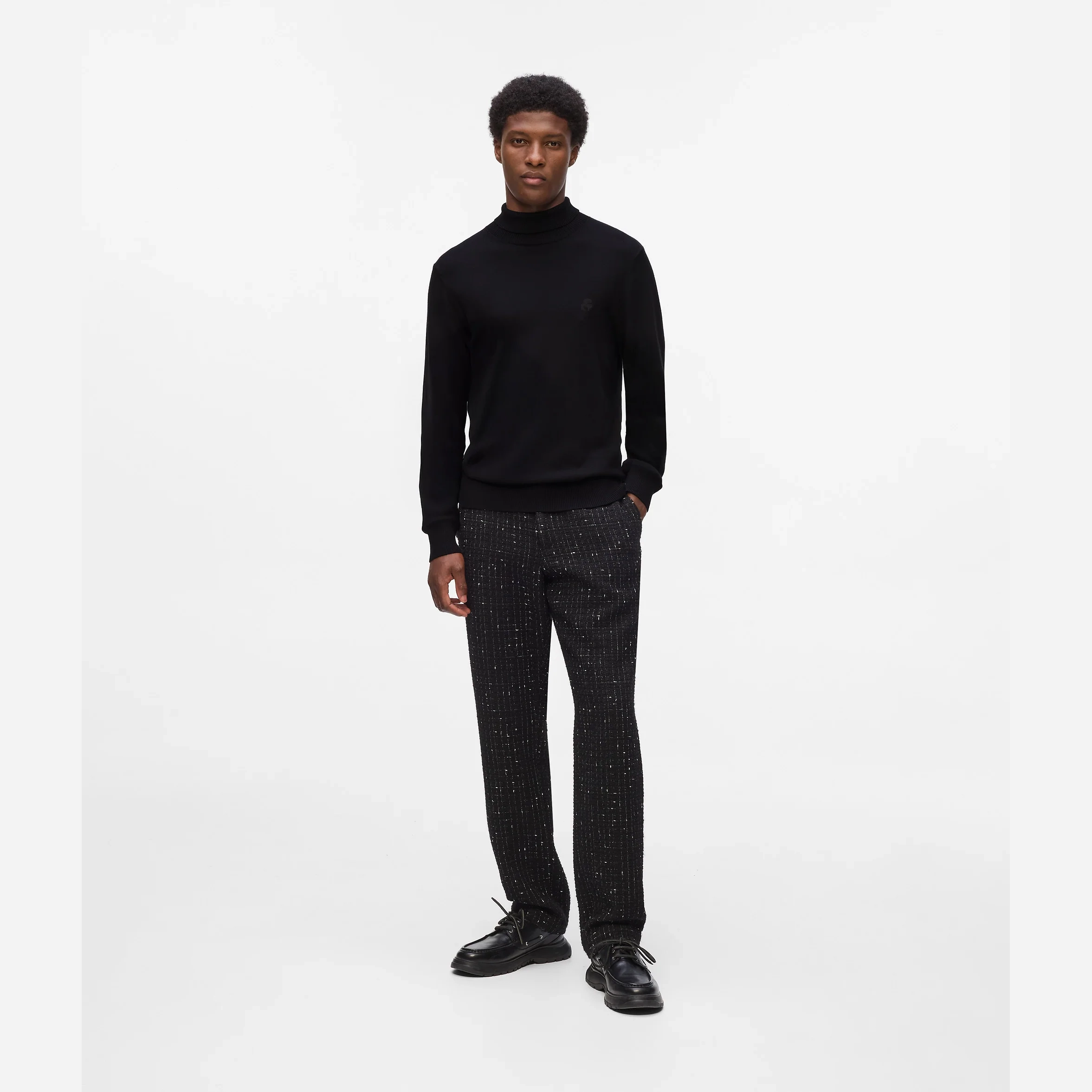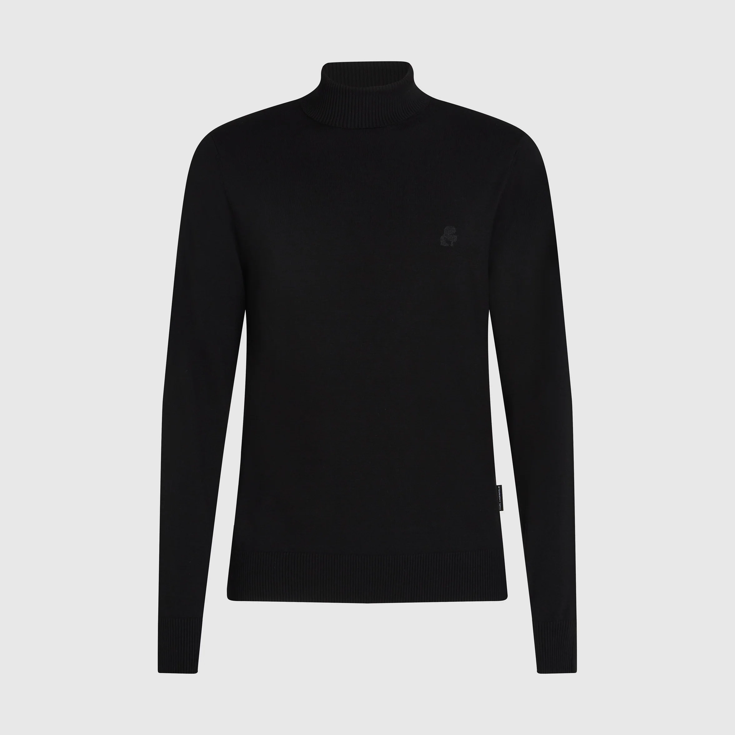 This sophisticated turtleneck sweater offers a sleek design with ribbed details that comfortably hug the silhouette. The tonal Karl Kameo embroidery adds a subtle touch of elegance.