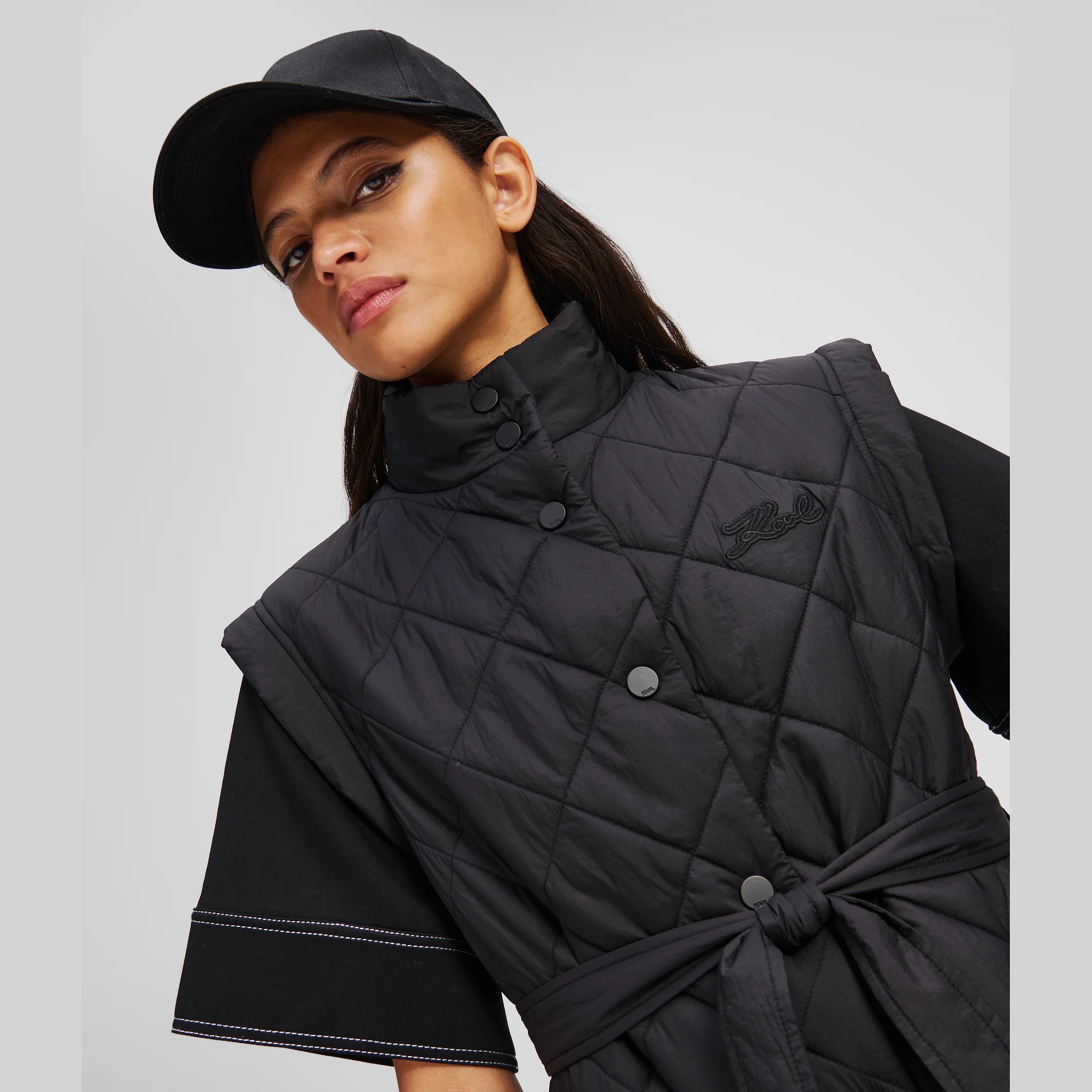 • Sleeveless, quilted silhouette