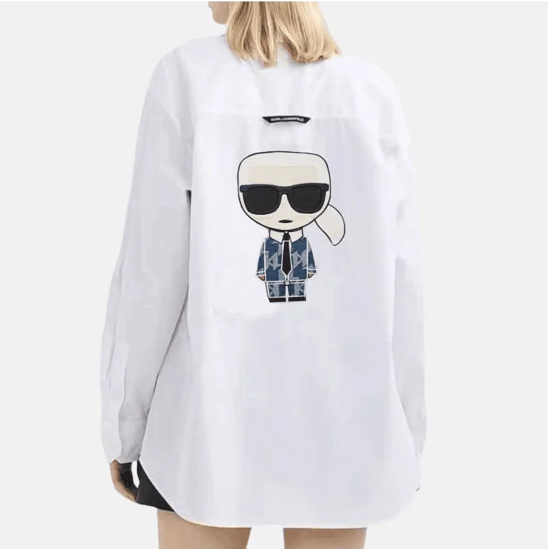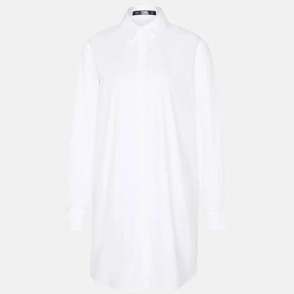 The Karl Lagerfeld Ikonik Tunic Shirt features a chic and versatile silhouette that can seamlessly transition from day to night. Its elegant length and tailored fit offer a flattering look for all body types, while the iconic Lagerfeld logo adds a touch of luxury and recognition. Whether paired with tailored trousers for a business meeting or dressed down with jeans for a casual outing, this tunic shirt is the epitome of versatility.