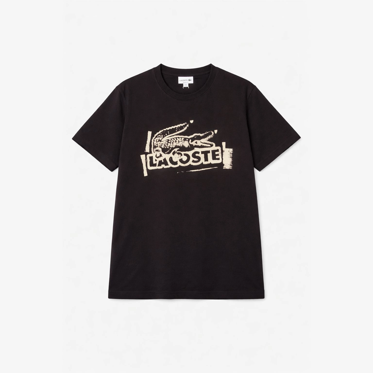 Fashion meets sportswear in this T-shirt, the fruit of 90 years of Lacoste creative expertise. Made from comfortable cotton jersey, with a large stencil-style print featuring our brand signatures. Finished with sophisticated details, including an embroidered crocodile on the back.