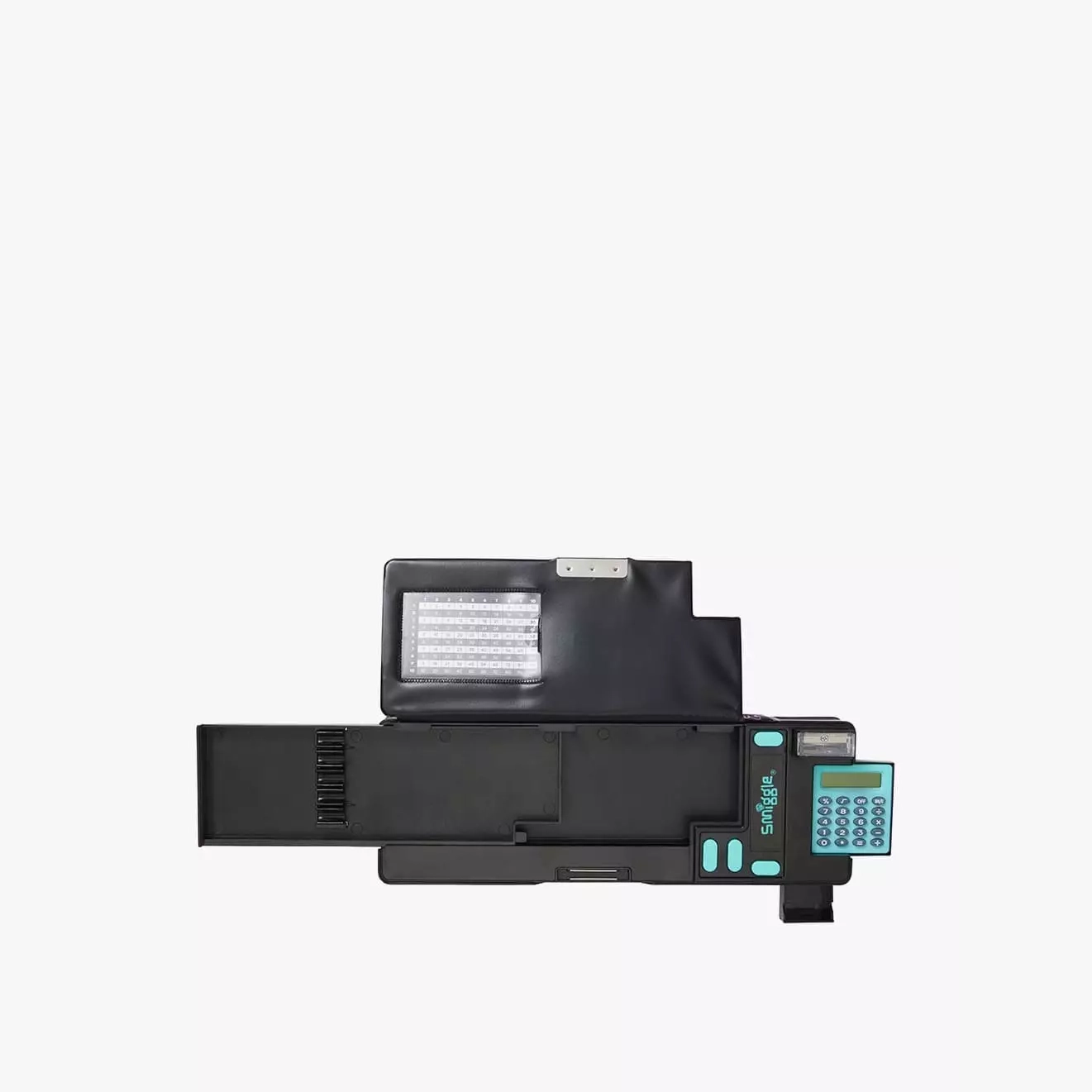 Find plenty of space to store and organise Smiggle pens with our Eclipse Pop Out Pencil Case! It features two compartments including one with inbuilt pen slots and a pop-out mini drawer that’s perfect for an eraser. Press the interactive buttons to reveal secret more stationery surprises including a calculator and sharpener!